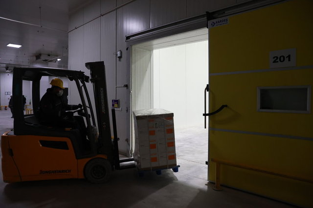 Sağlık Bakanlığından yapılan yazılı açıklamaya göre, Sinovac firmasına ait Covid-19 aşıları, depolarda güvenilirlik ve etkinlik açısından bir dizi işlemden geçiriliyor. Öncelikle “soğuk zincir” konusunda eğitimli sağlık personelince paletler açılıyor. Bu aşamada her palette bulunan sıcaklık kayıt cihazları okunuyor. Her kolideki elektronik donma göstergeleri ile ısı maruziyetini gösteren ısı monitör kartları kontrol ediliyor. Aşılar, uygun taşıma kurallarına göre teslim edildiğinden emin olunduktan sonra depodaki yerlerine yerleştiriliyor.