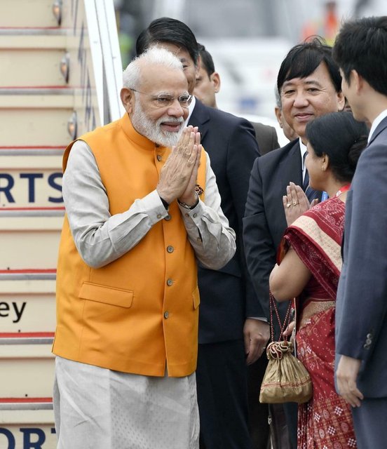 Japonya Başbakanı Abe, liderleri fuar merkezi önünde hazırlanan platformda karşıladı.