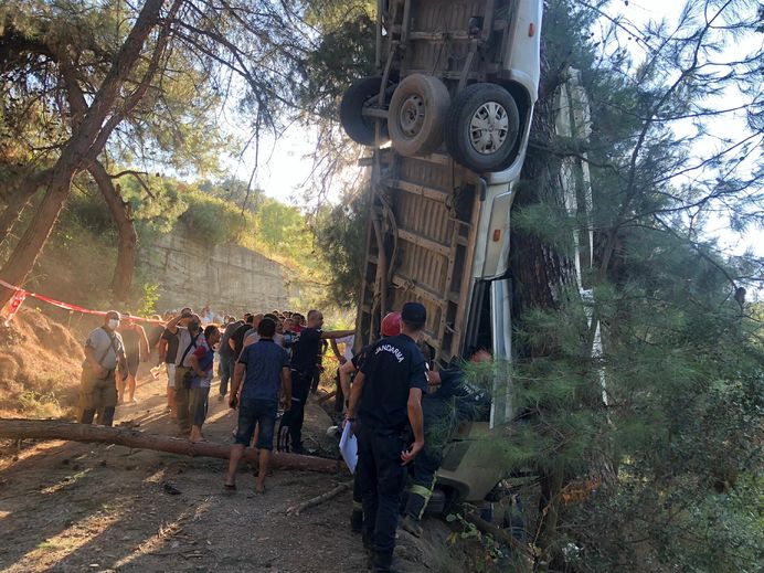 DHA'nın haberine göre, takla atan midibüs, çarptığı ağaçta baş aşağı asılı vaziyette kaldı. Kaza devriye görevinde bulunan jandarma ekibi tarafından fark edildi. Can pazarının yaşandığı kaza yerine ihbar üzerine çok sayıda sağlık ve itfaiye ekipleri sevk edildi.