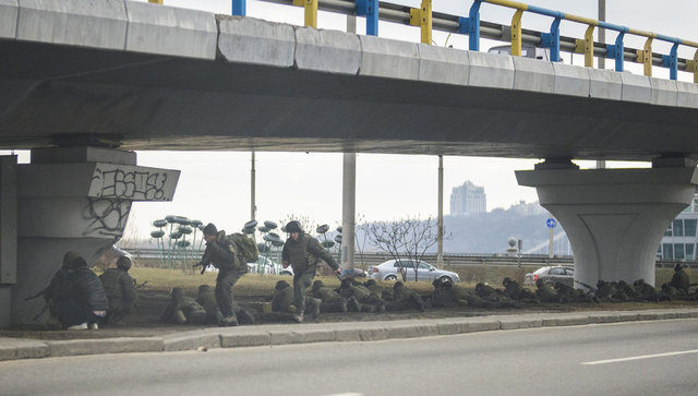 Öte yandan başkent Kiev'de bir köprüde Ukrayna askerlerinin Rus müdahalesine karşı konuşlanması dikkat çekti.