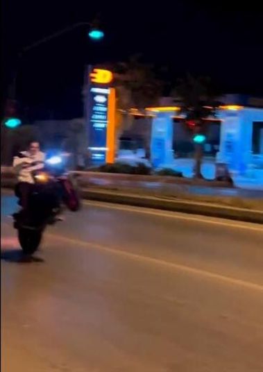 Bir süre önce yaptığı bir diğer paylaşımda ise Bayar'ın motosikletin önünü kaldırarak, tehlikeli şekilde ilerlediği anlar yer aldı.