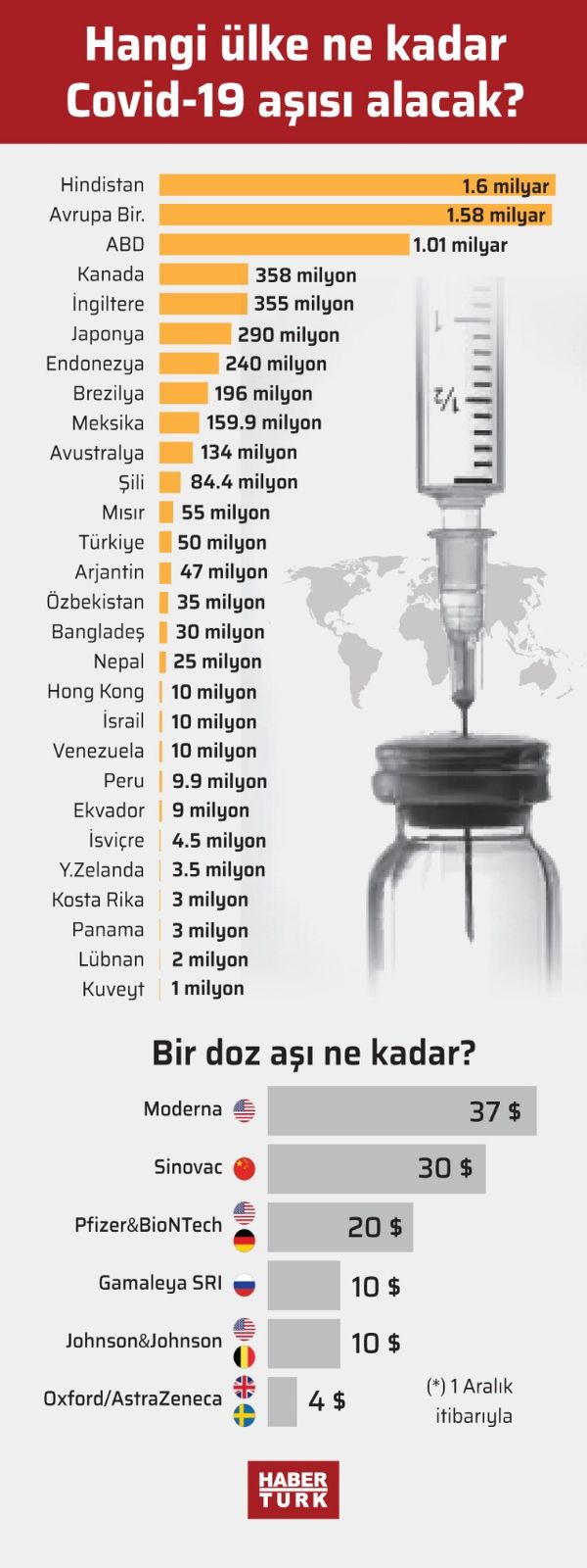 Sağlık Bakanı Koca, "Aşıyı yaparken biz vatandaşımızdan herhangi bir ücret asla almayacağız. Aşının dünyada fiyatı aşağı yukarı belli. 10 dolar, 12 dolar, 5-5.5 dolar. Bizim sipariş ettiğimiz aşı dünya ortalamasının üstünde bir rakam. Bu aşıyı da vatandaşımıza ücretsiz ulaştırmayı sağlayacağız. Özellikle yapılmasını gerekli gördüğümüz kesimlere ücretsiz biz yapacağız. Bunun dışında farklı bir aşıyı almak isterse vatandaşımız, üst limit koyarak eczanelerden almalarının önünü açmış olacağız" açıklamasında bulunmuştu.