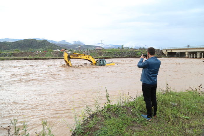 Erzurum'un Oltu ilçesinden geçen Oltu Çayı, şiddetli sağanak sebebiyle kısmen taşarak ekili arazilerde hasara yol açtı, park halindeki bir iş makinesi de sel sularına kapıldı