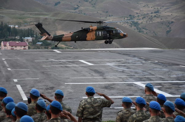 Silah arkadaşları tarafından omuzlarda taşınarak helitoptere konulan şehitlerin naaşları, Yüksekova Selahaddin Eyyubi Havalimanı'na götürüldü.