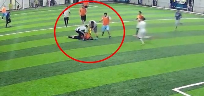 Siirt'te, memur 37 yaşındaki Nurettin Çiçek'in, halı sahada maç yaparken fenalaşıp hayatını kaybettiği olaya ilişkin güvenlik kamerası görüntüleri ortaya çıktı. Görüntülerde, Çiçek'in bir anda duraksadığı, başını tuttuktan sonra yere düştüğü, çevredekilerin yardıma koştuğu anlar yer aldı