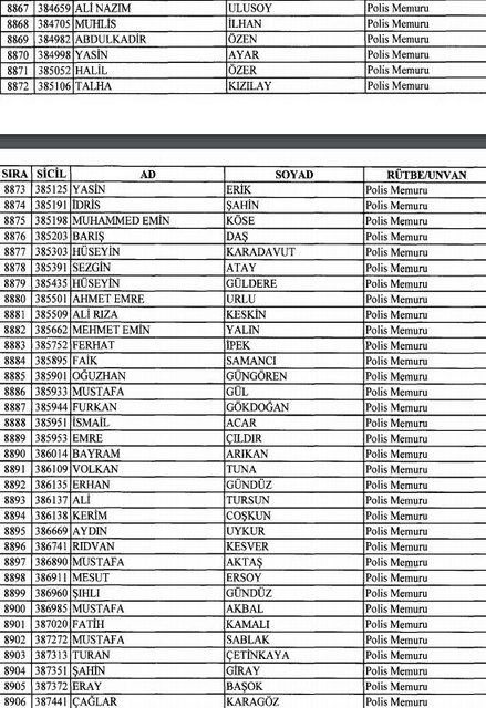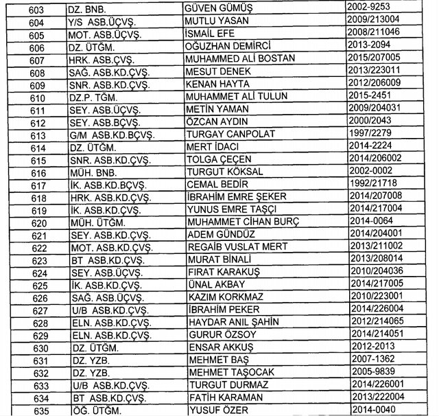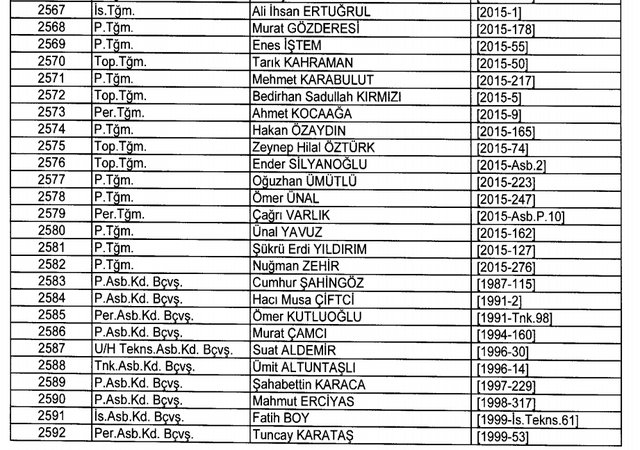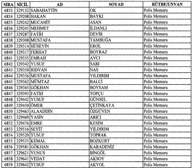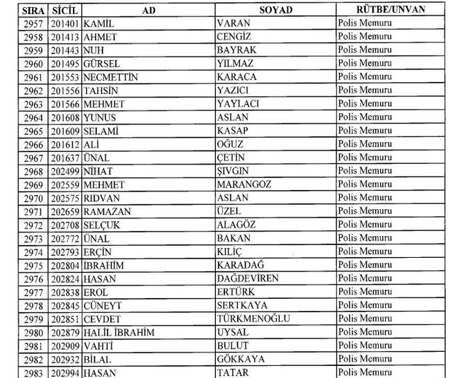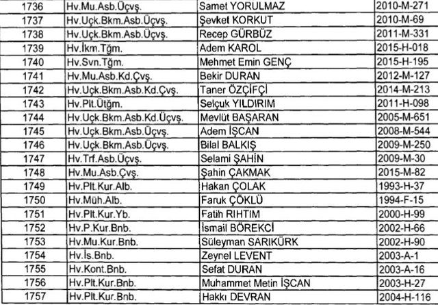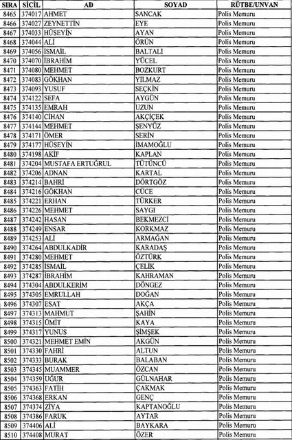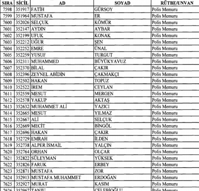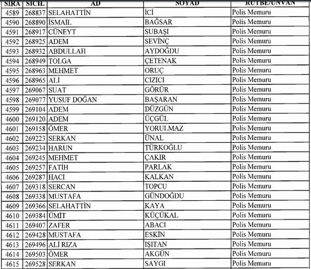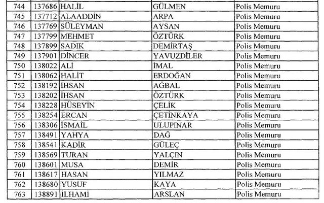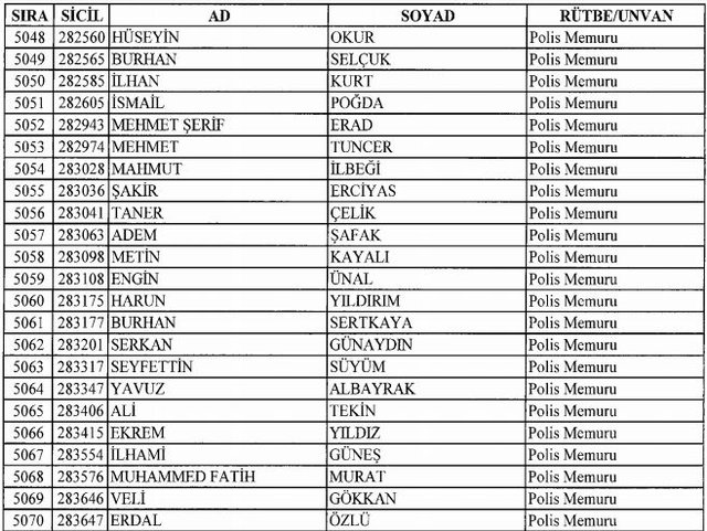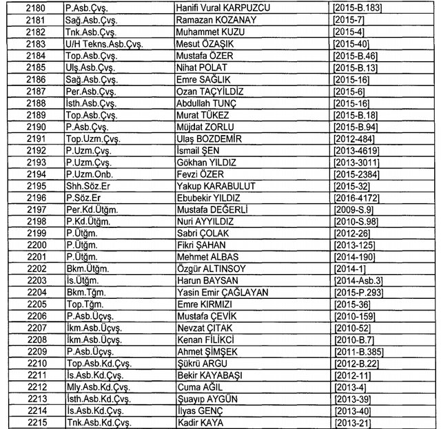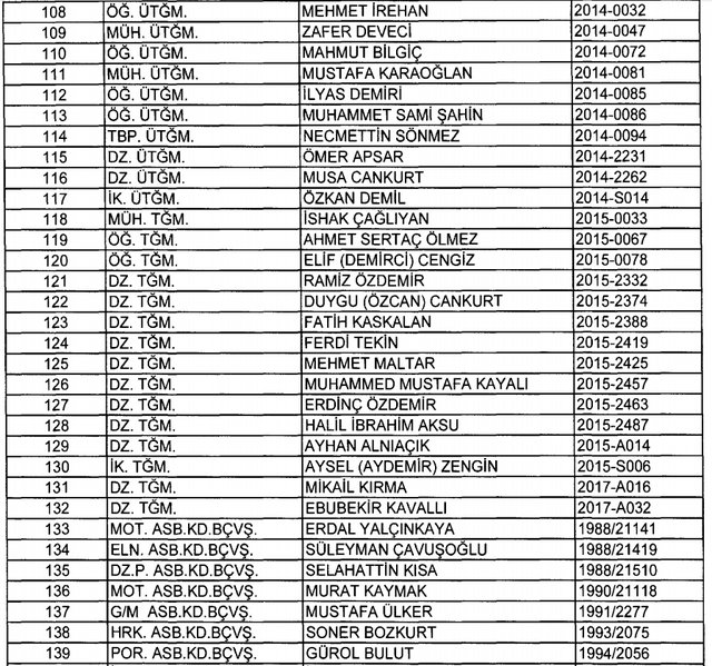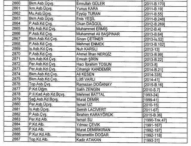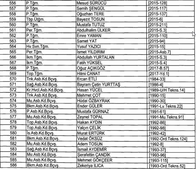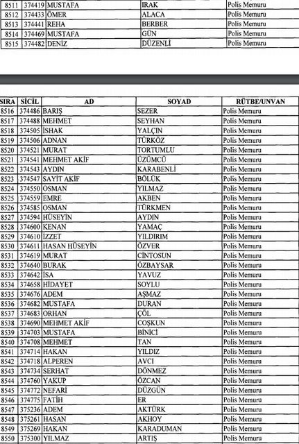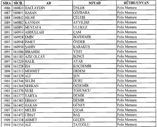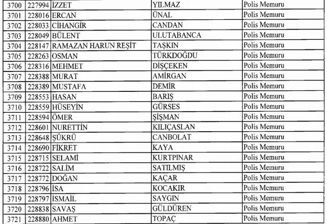İhraç listesi yayımlandı. Olağanüstü Hal (OHAL) kapsamında yayımlanan 701 sayılı Kanun Hükmünde Kararname (KHK) ile çeşitli kurumlarda görev yapan 18 bin 632 personel kamudan ihraç edildi. Aynı KHK ile 148 personel, kamudaki görevlerine iade edildi. Kurumlarından daha önce ayrılan, TSK'dan 324, Emniyet Genel Müdürlüğünden 1167 ve jandarmadan 35 personelin rütbeleri 701 sayılı KHK ile alındı. İşte son KHK ihraç listesi...