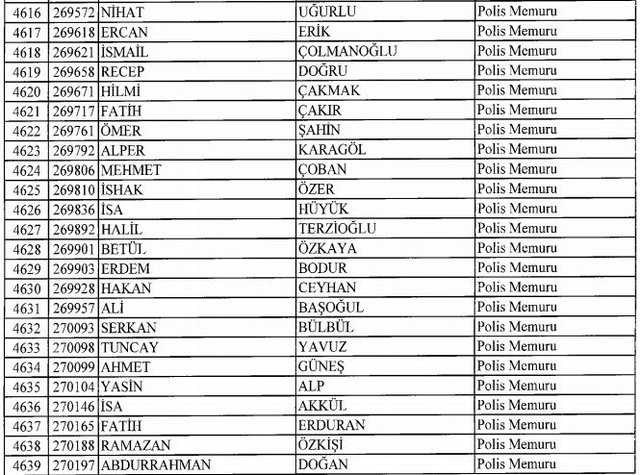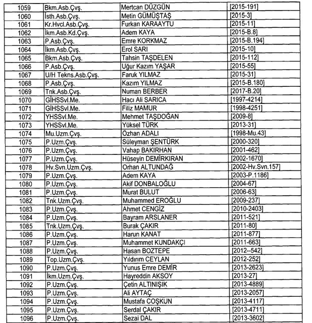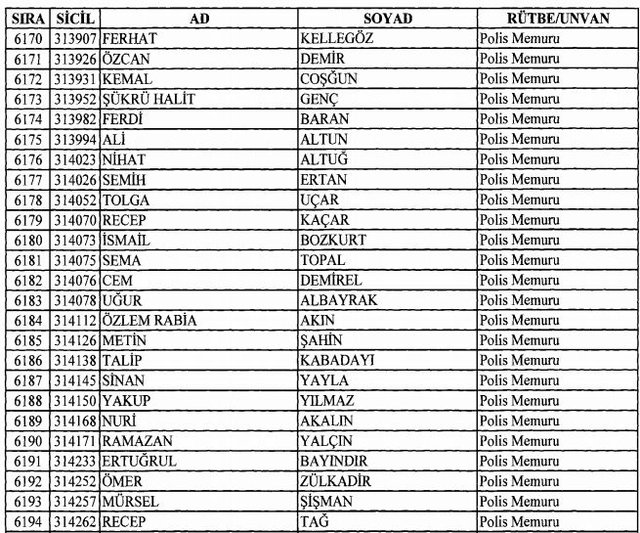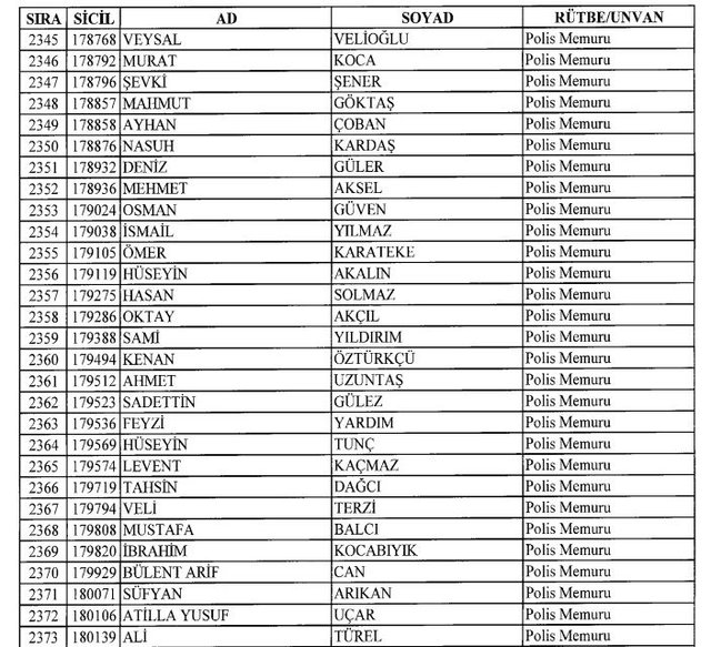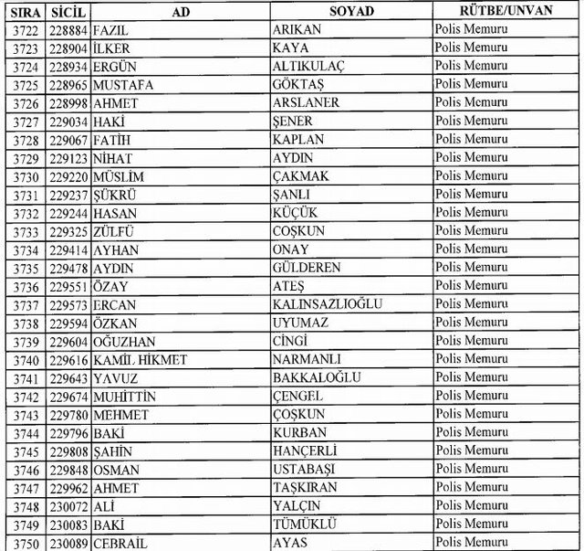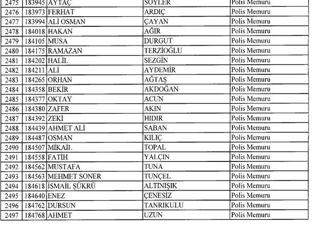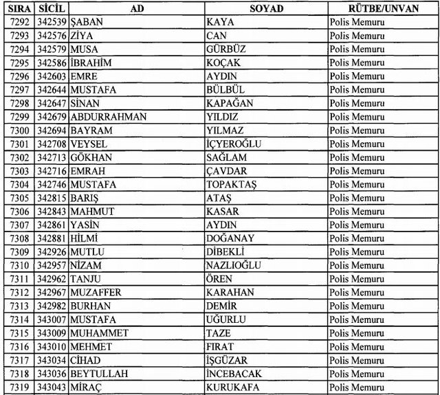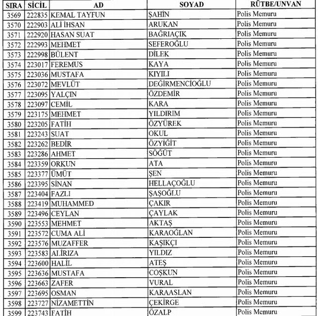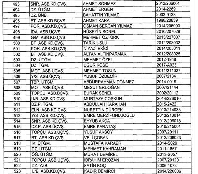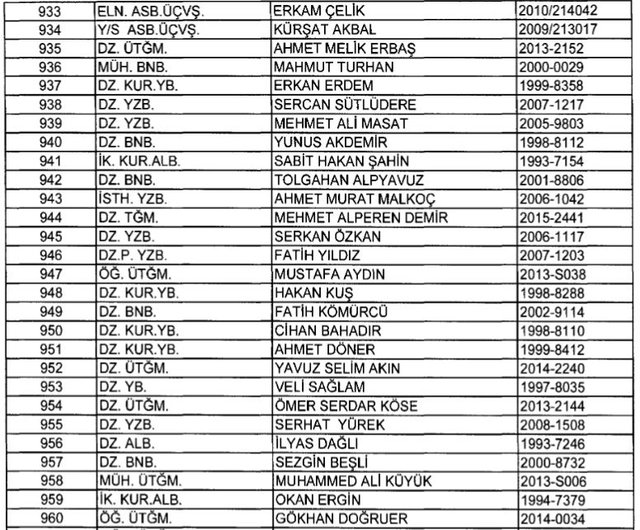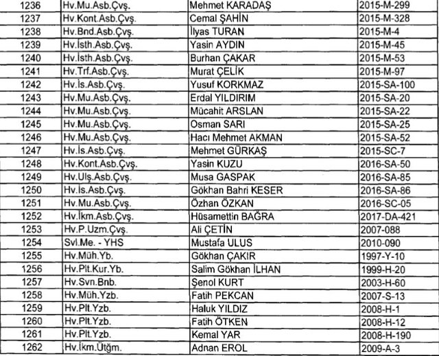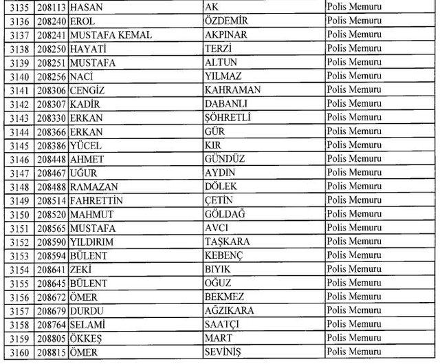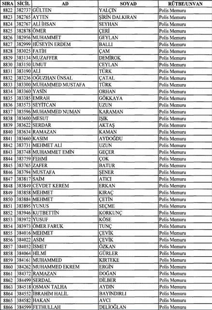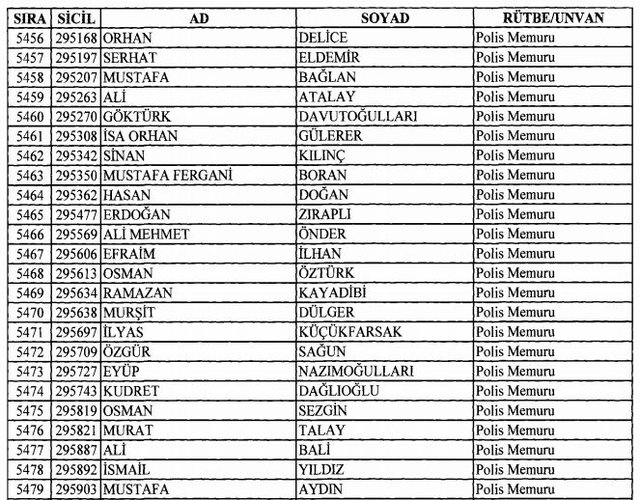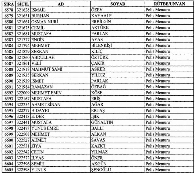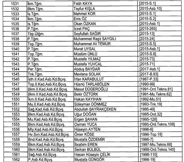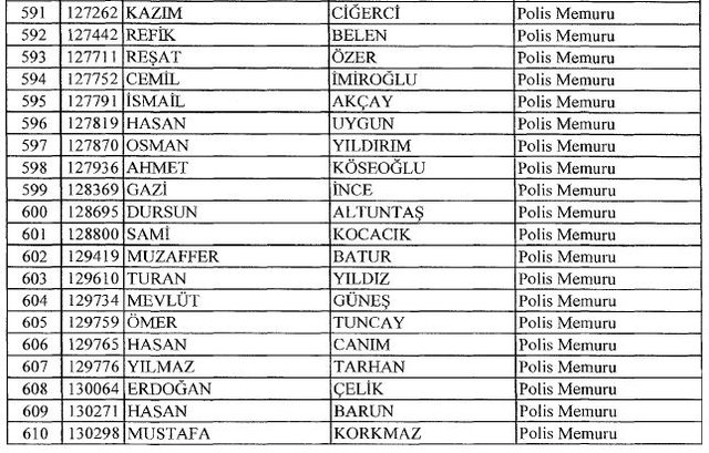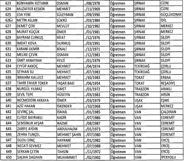İhraç listesi yayımlandı. Olağanüstü Hal (OHAL) kapsamında yayımlanan 701 sayılı Kanun Hükmünde Kararname (KHK) ile çeşitli kurumlarda görev yapan 18 bin 632 personel kamudan ihraç edildi. Aynı KHK ile 148 personel, kamudaki görevlerine iade edildi. Kurumlarından daha önce ayrılan, TSK'dan 324, Emniyet Genel Müdürlüğünden 1167 ve jandarmadan 35 personelin rütbeleri 701 sayılı KHK ile alındı. İşte son KHK ihraç listesi...