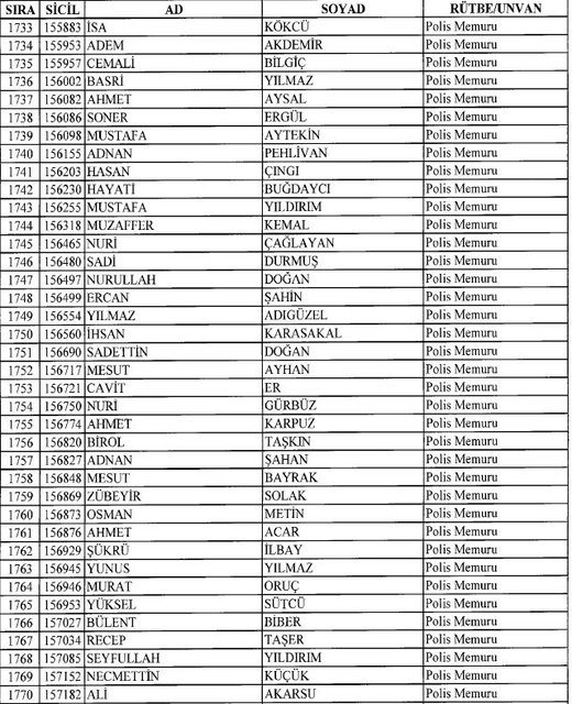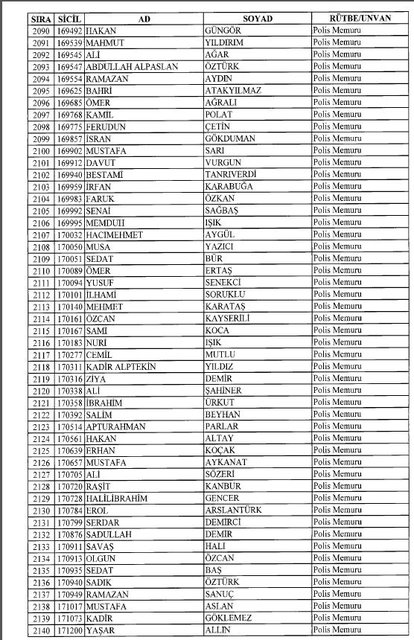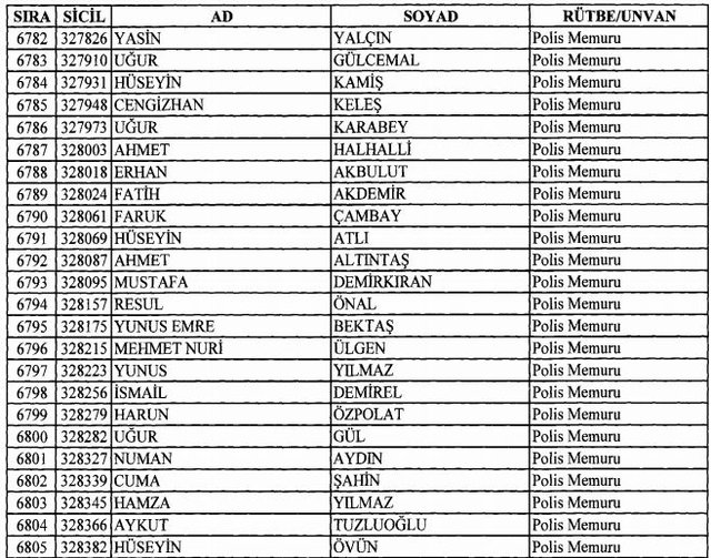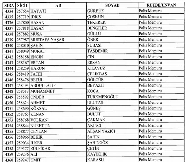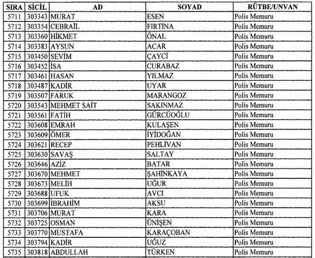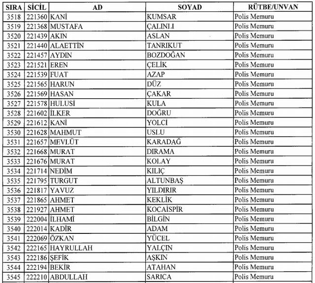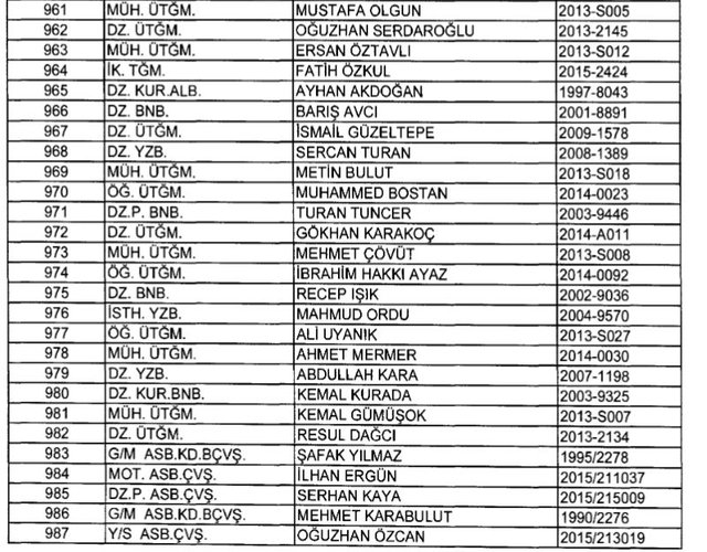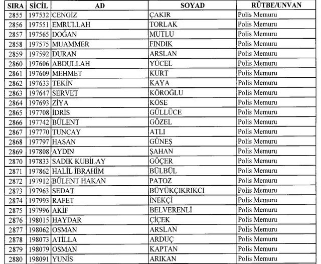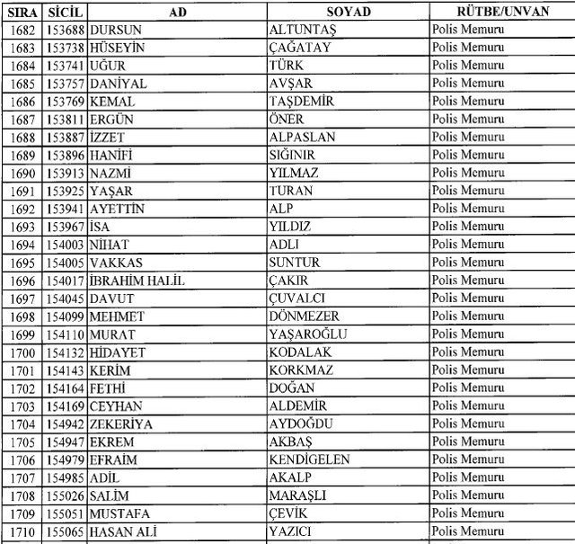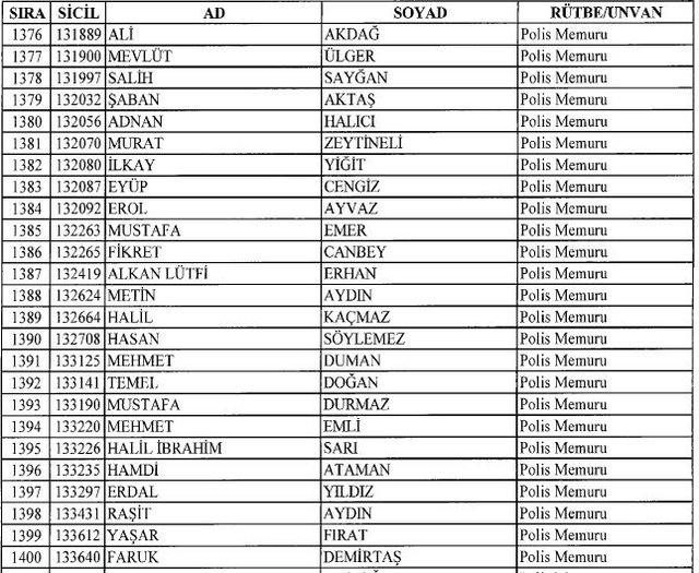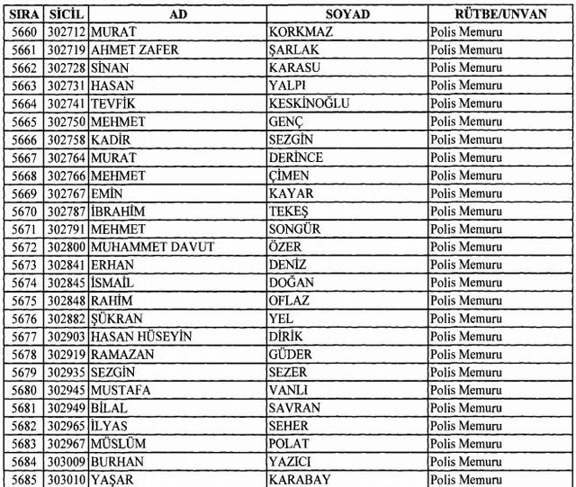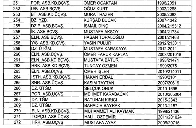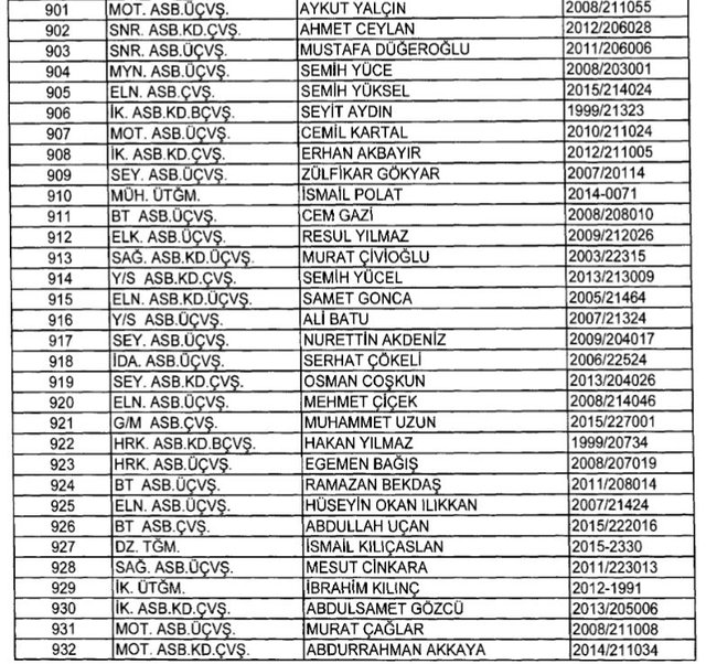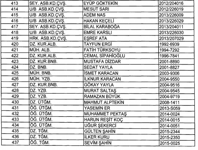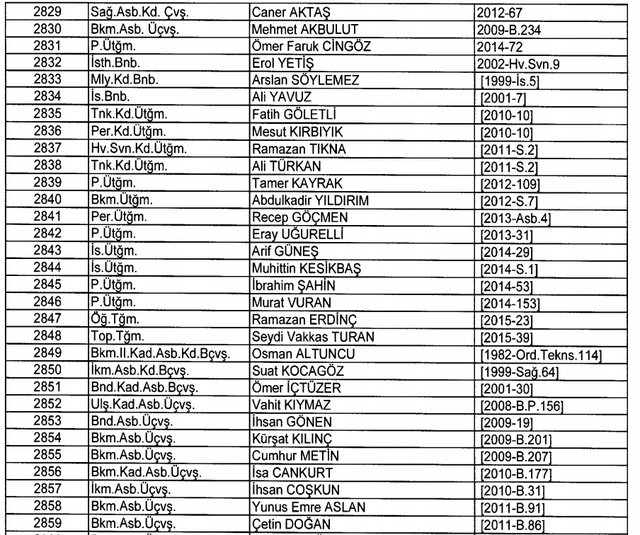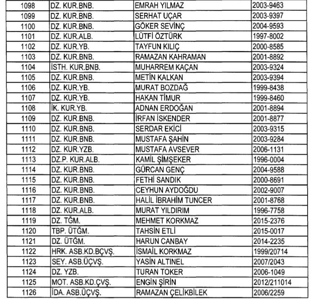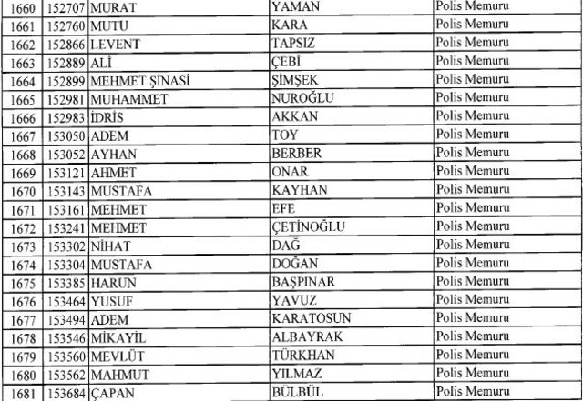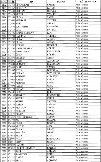 İhraç listesi yayımlandı. Olağanüstü Hal (OHAL) kapsamında yayımlanan 701 sayılı Kanun Hükmünde Kararname (KHK) ile çeşitli kurumlarda görev yapan 18 bin 632 personel kamudan ihraç edildi. Aynı KHK ile 148 personel, kamudaki görevlerine iade edildi. Kurumlarından daha önce ayrılan, TSK'dan 324, Emniyet Genel Müdürlüğünden 1167 ve jandarmadan 35 personelin rütbeleri 701 sayılı KHK ile alındı. İşte son KHK ihraç listesi...