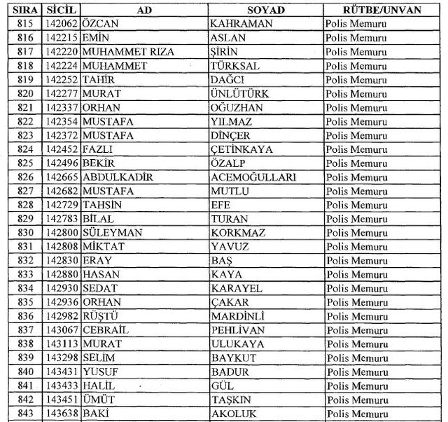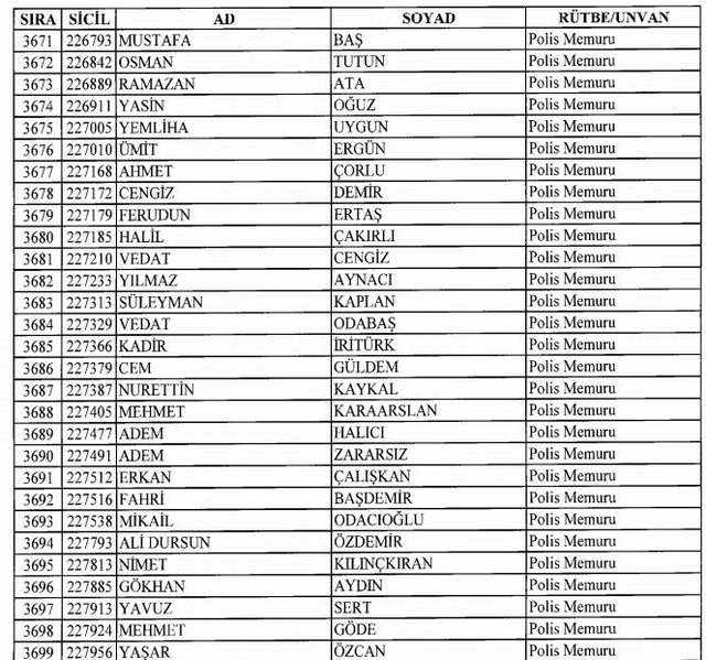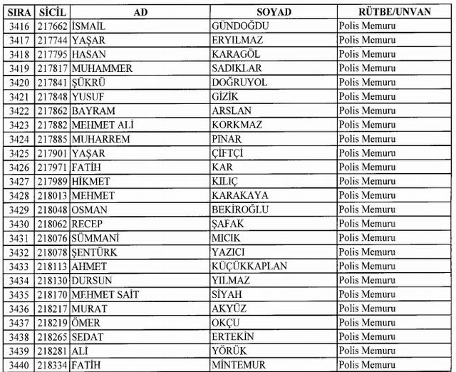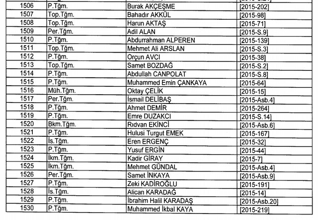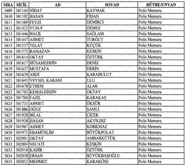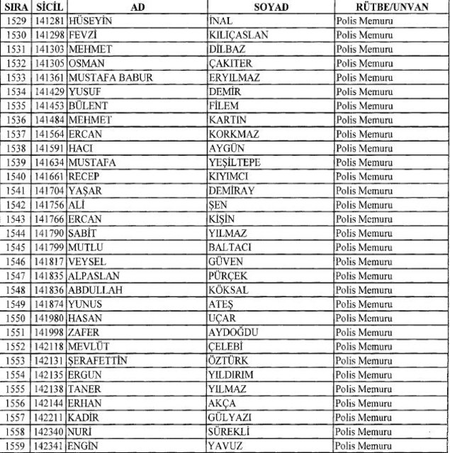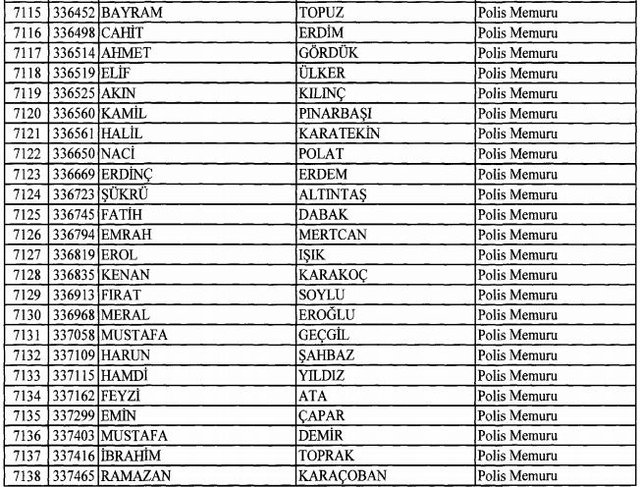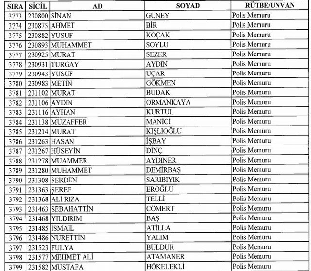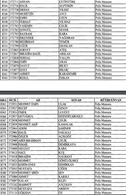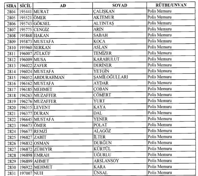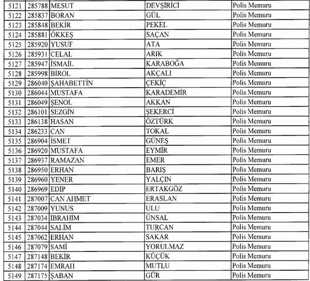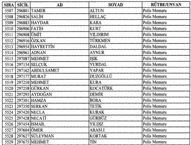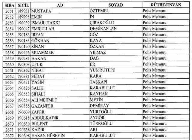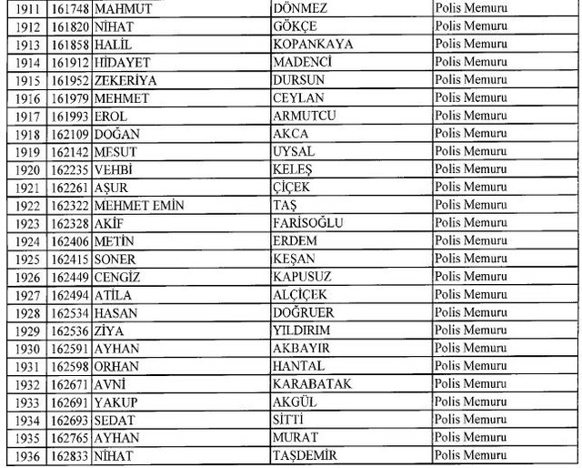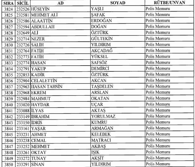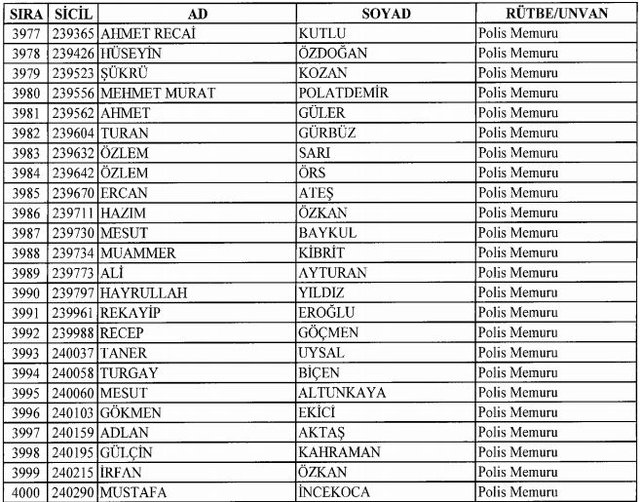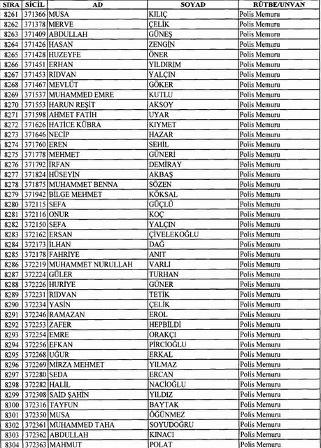İhraç listesi yayımlandı. Olağanüstü Hal (OHAL) kapsamında yayımlanan 701 sayılı Kanun Hükmünde Kararname (KHK) ile çeşitli kurumlarda görev yapan 18 bin 632 personel kamudan ihraç edildi. Aynı KHK ile 148 personel, kamudaki görevlerine iade edildi. Kurumlarından daha önce ayrılan, TSK'dan 324, Emniyet Genel Müdürlüğünden 1167 ve jandarmadan 35 personelin rütbeleri 701 sayılı KHK ile alındı. İşte son KHK ihraç listesi...