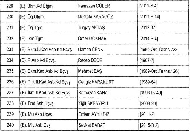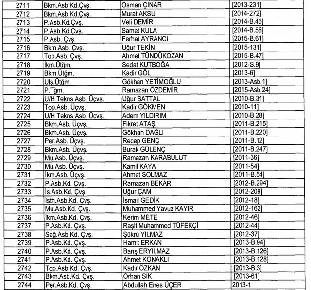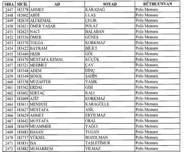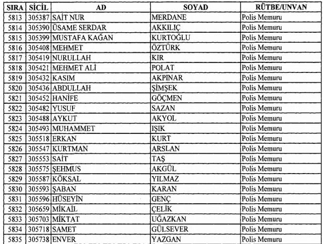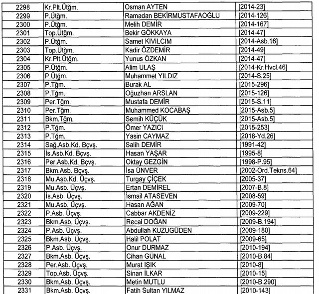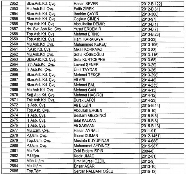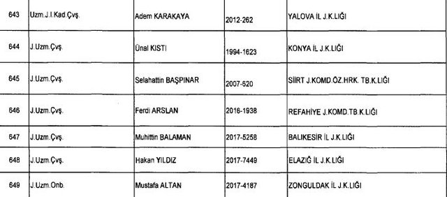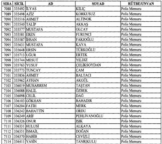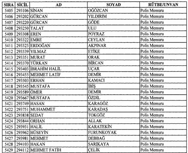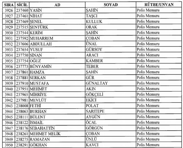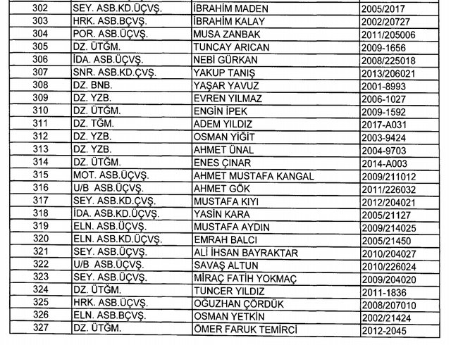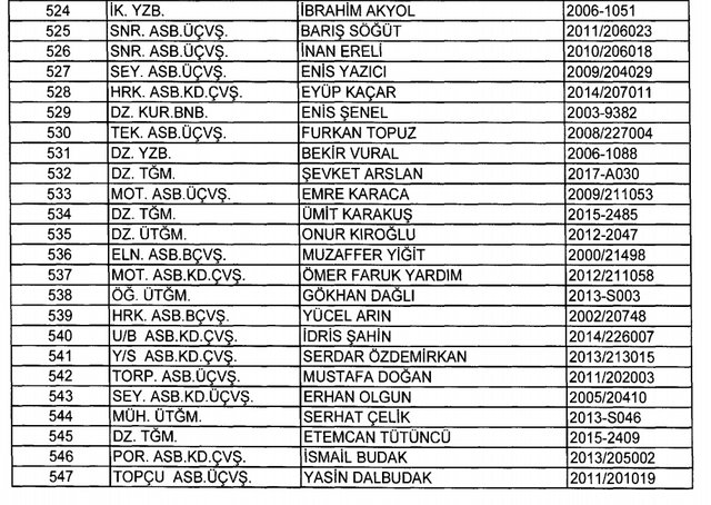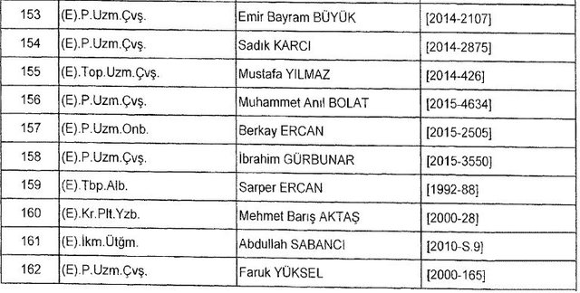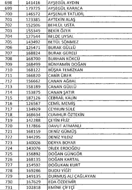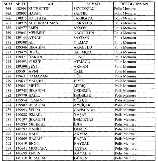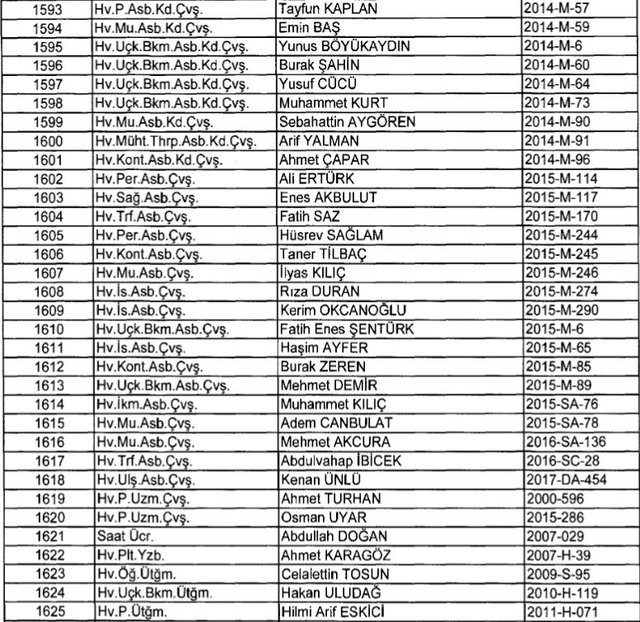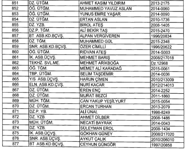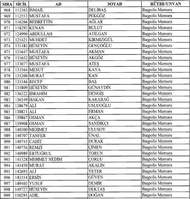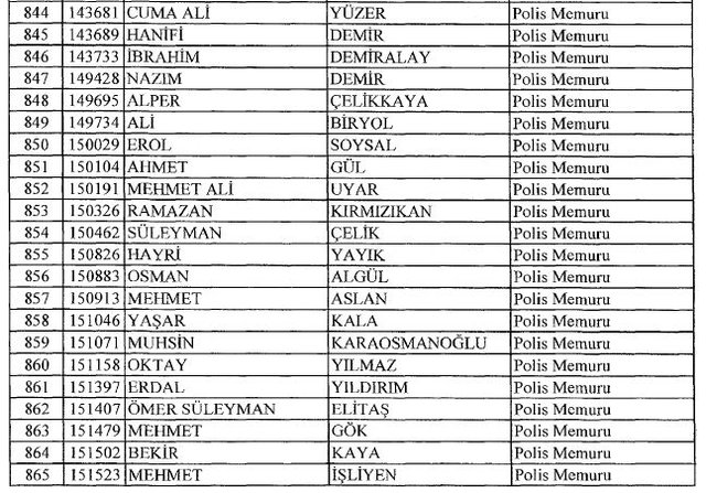 İhraç listesi yayımlandı. Olağanüstü Hal (OHAL) kapsamında yayımlanan 701 sayılı Kanun Hükmünde Kararname (KHK) ile çeşitli kurumlarda görev yapan 18 bin 632 personel kamudan ihraç edildi. Aynı KHK ile 148 personel, kamudaki görevlerine iade edildi. Kurumlarından daha önce ayrılan, TSK'dan 324, Emniyet Genel Müdürlüğünden 1167 ve jandarmadan 35 personelin rütbeleri 701 sayılı KHK ile alındı. İşte son KHK ihraç listesi...