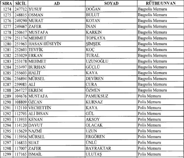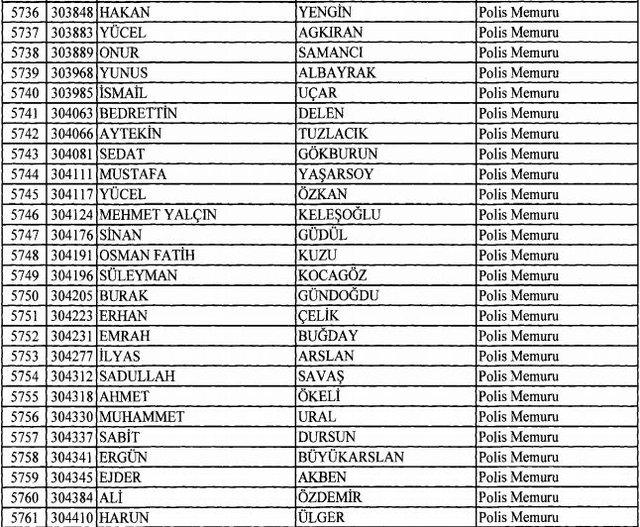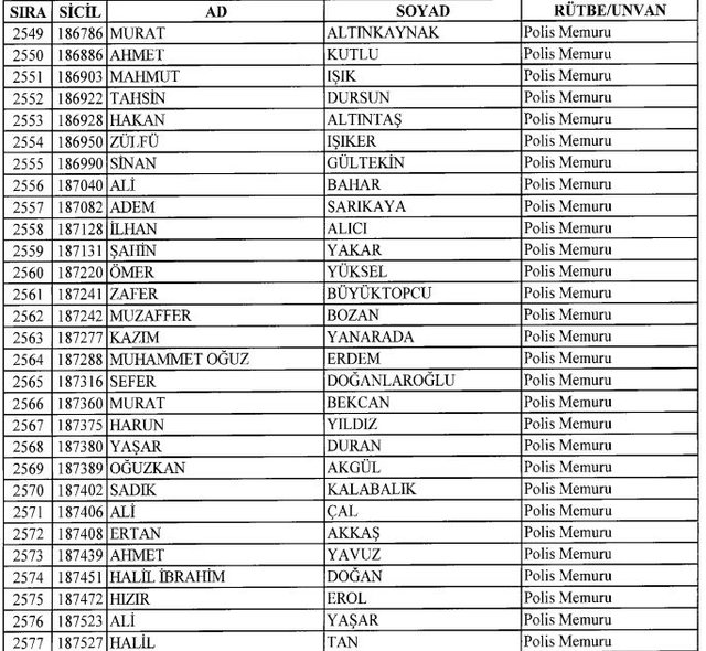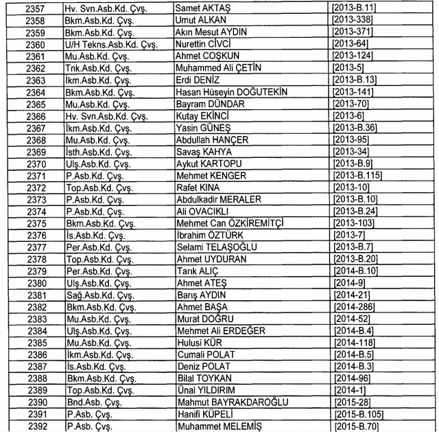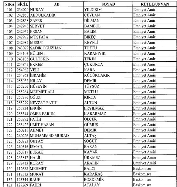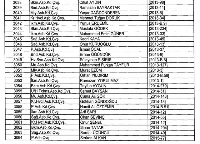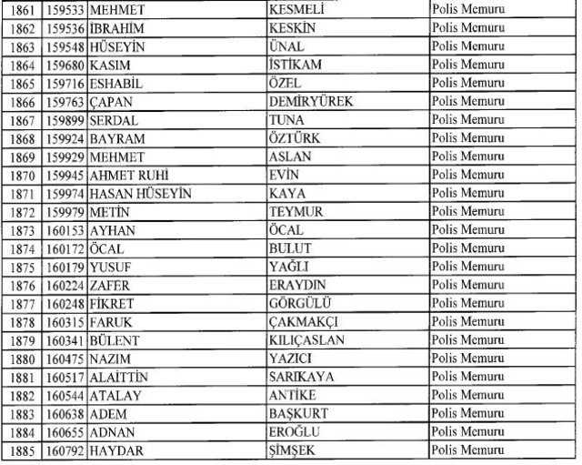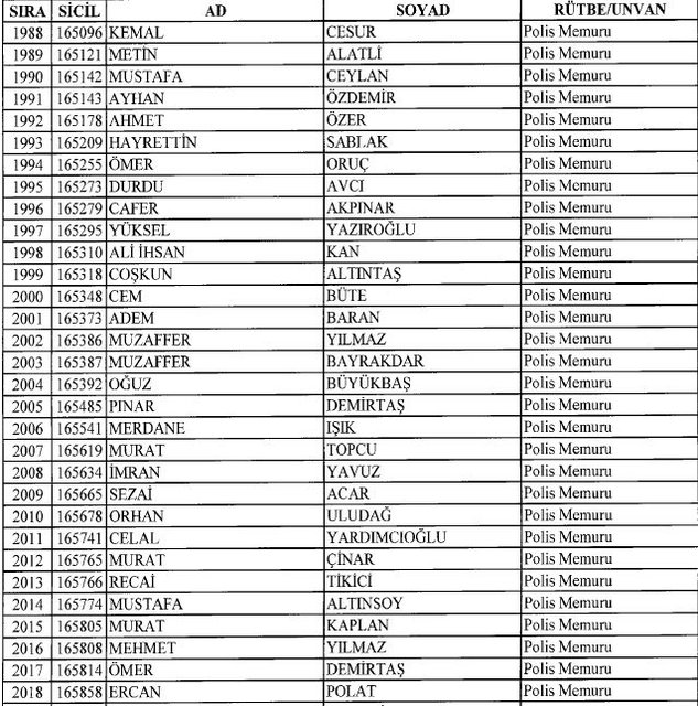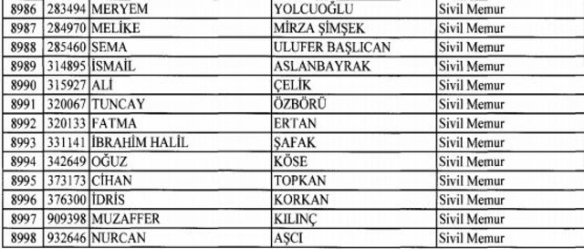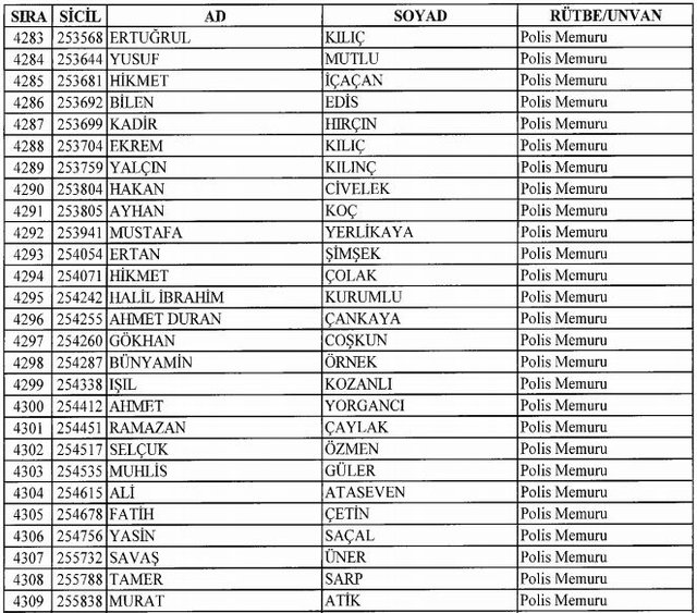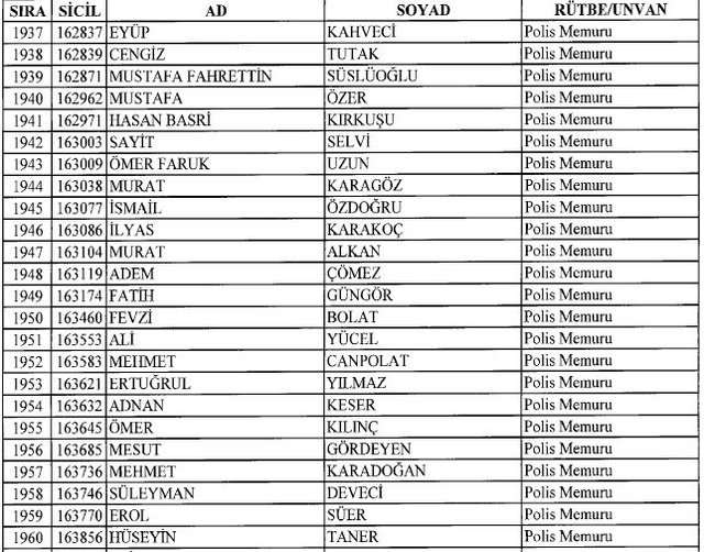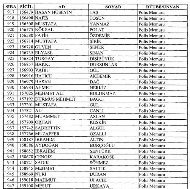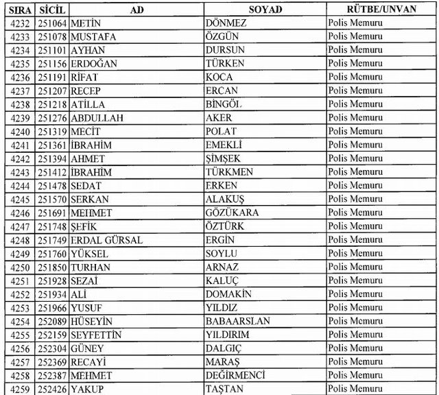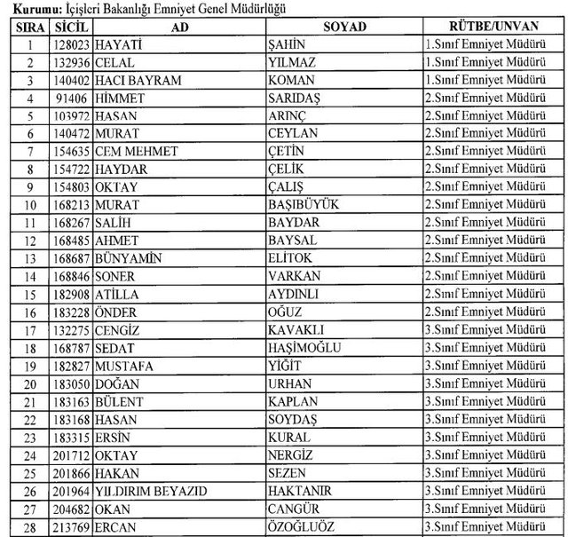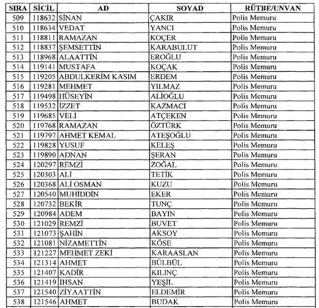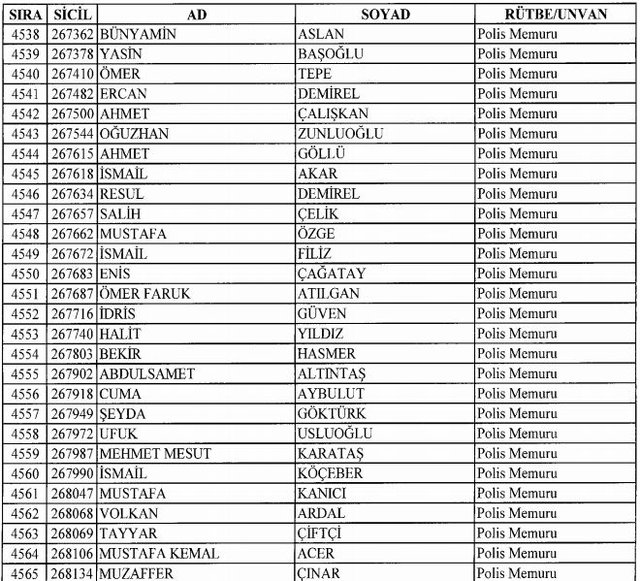 İhraç listesi yayımlandı. Olağanüstü Hal (OHAL) kapsamında yayımlanan 701 sayılı Kanun Hükmünde Kararname (KHK) ile çeşitli kurumlarda görev yapan 18 bin 632 personel kamudan ihraç edildi. Aynı KHK ile 148 personel, kamudaki görevlerine iade edildi. Kurumlarından daha önce ayrılan, TSK'dan 324, Emniyet Genel Müdürlüğünden 1167 ve jandarmadan 35 personelin rütbeleri 701 sayılı KHK ile alındı. İşte son KHK ihraç listesi...