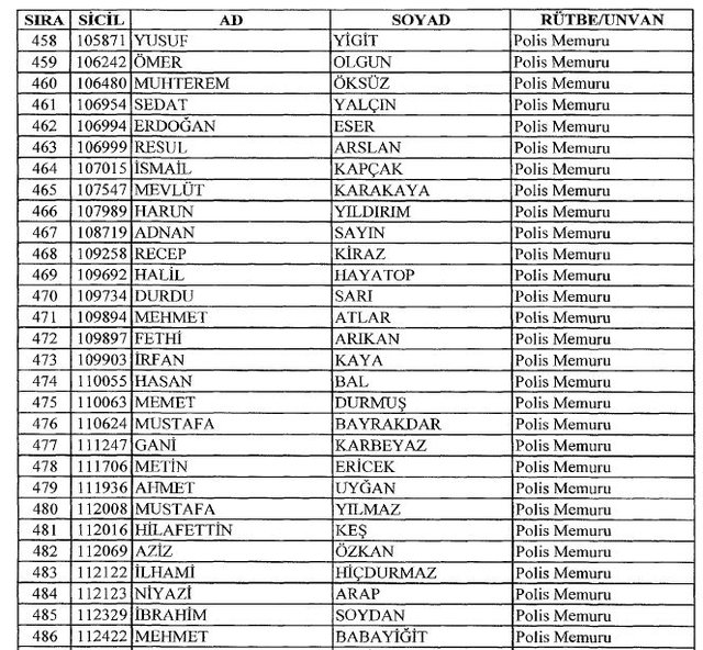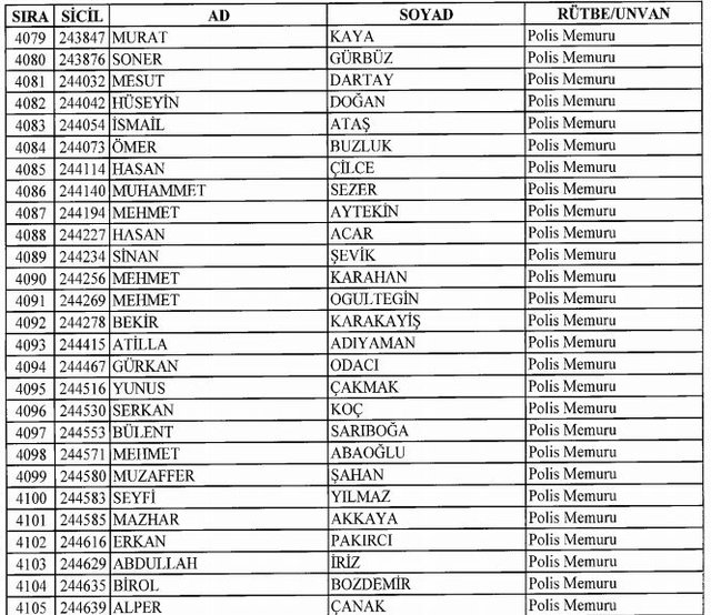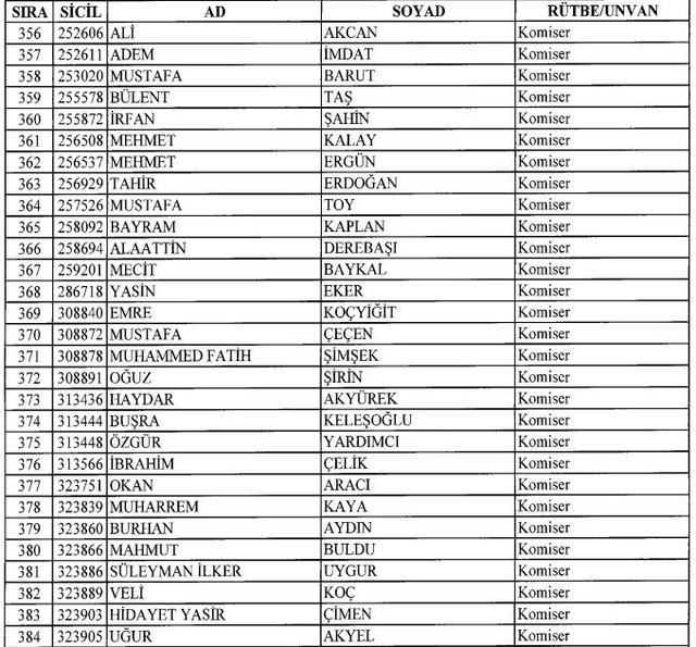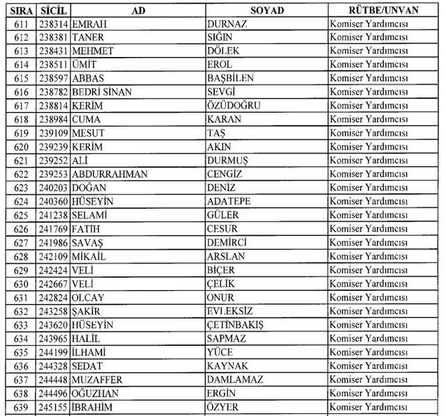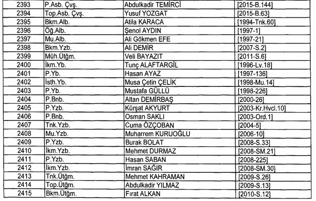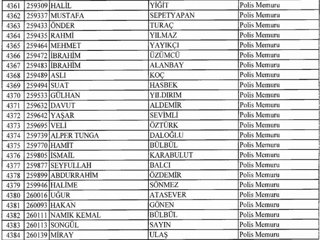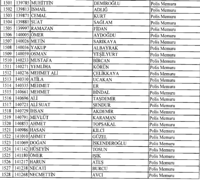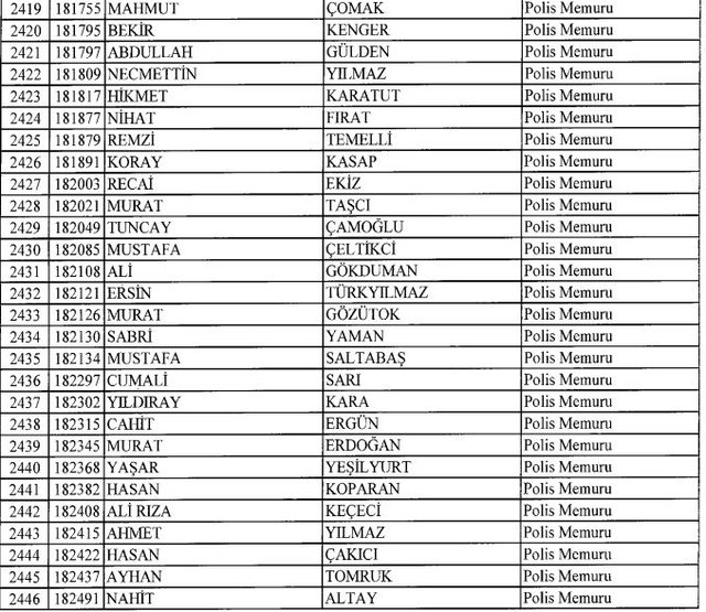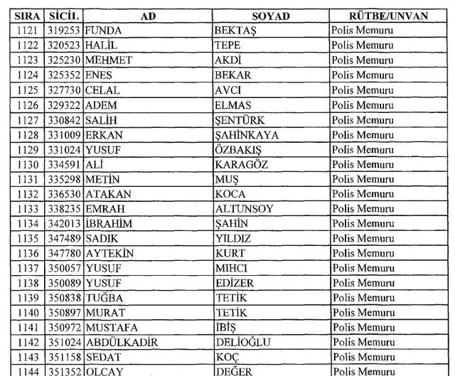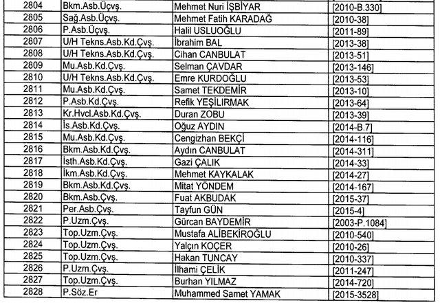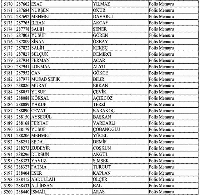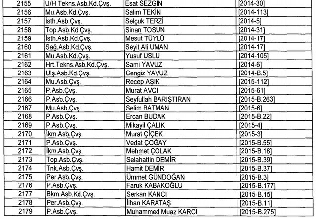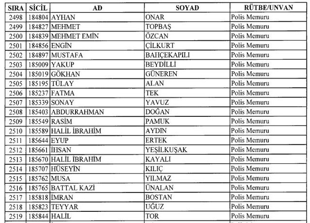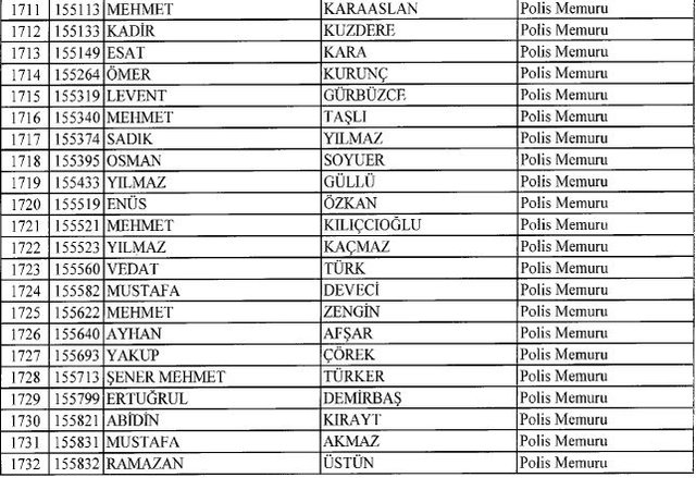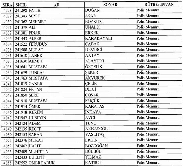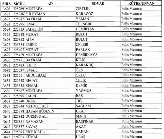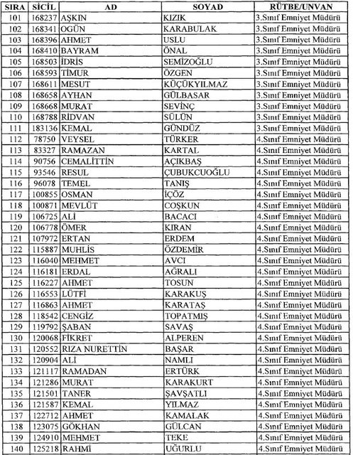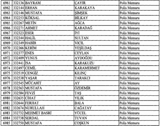 İhraç listesi yayımlandı. Olağanüstü Hal (OHAL) kapsamında yayımlanan 701 sayılı Kanun Hükmünde Kararname (KHK) ile çeşitli kurumlarda görev yapan 18 bin 632 personel kamudan ihraç edildi. Aynı KHK ile 148 personel, kamudaki görevlerine iade edildi. Kurumlarından daha önce ayrılan, TSK'dan 324, Emniyet Genel Müdürlüğünden 1167 ve jandarmadan 35 personelin rütbeleri 701 sayılı KHK ile alındı. İşte son KHK ihraç listesi...