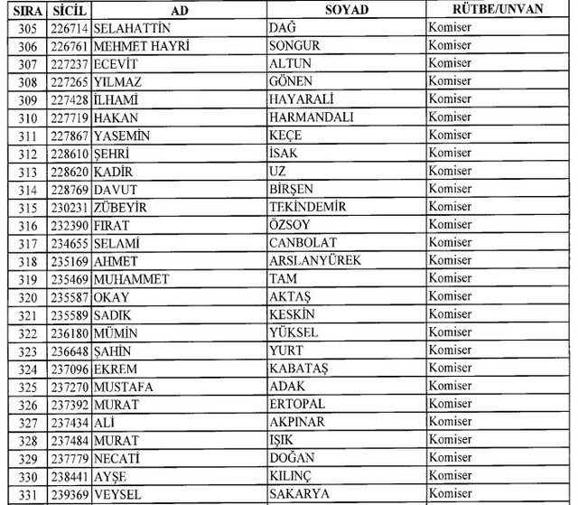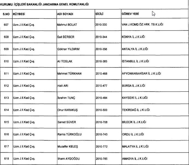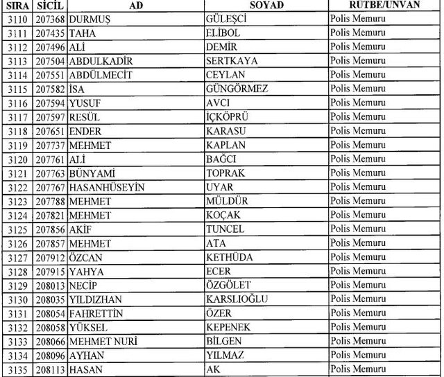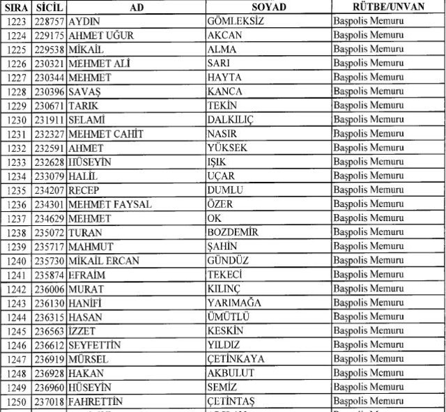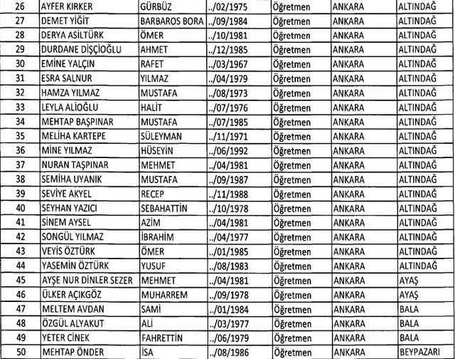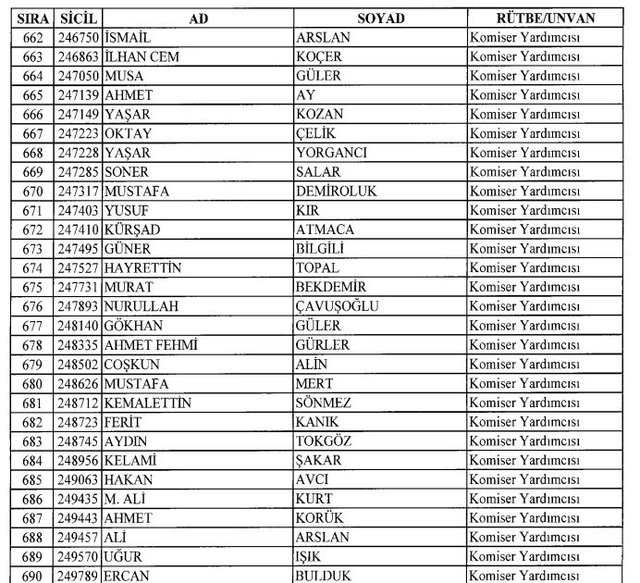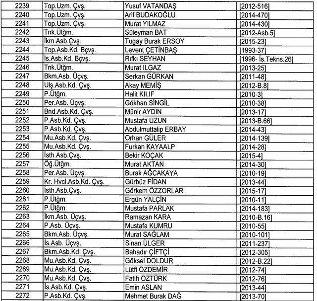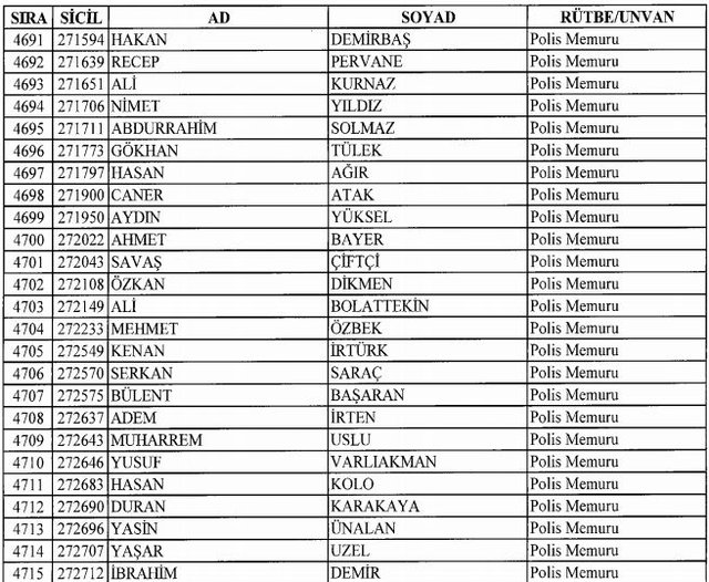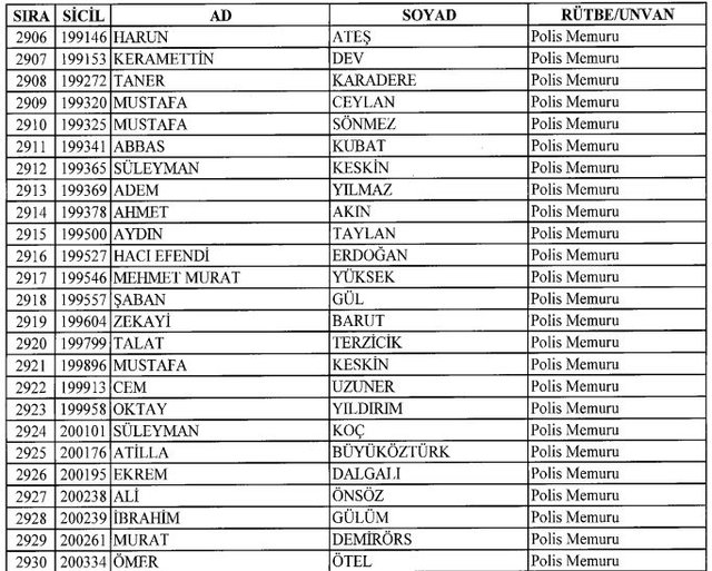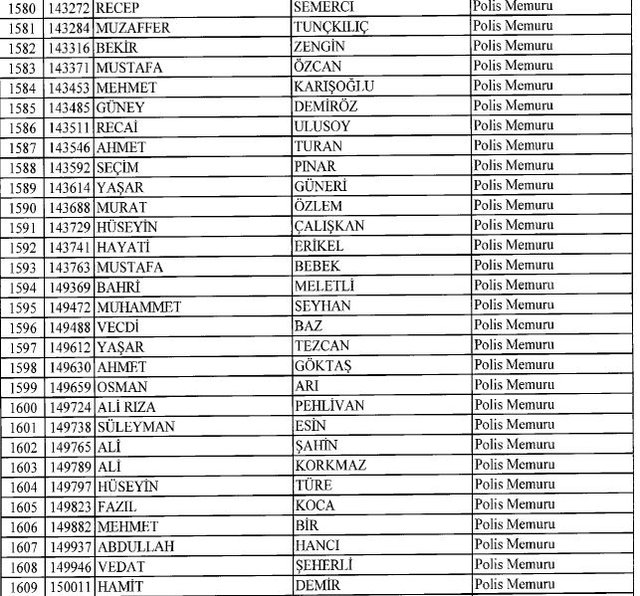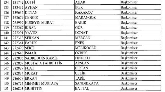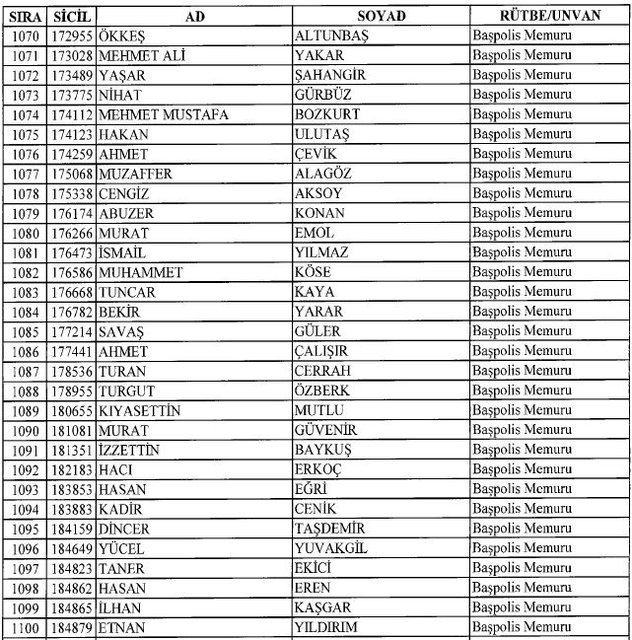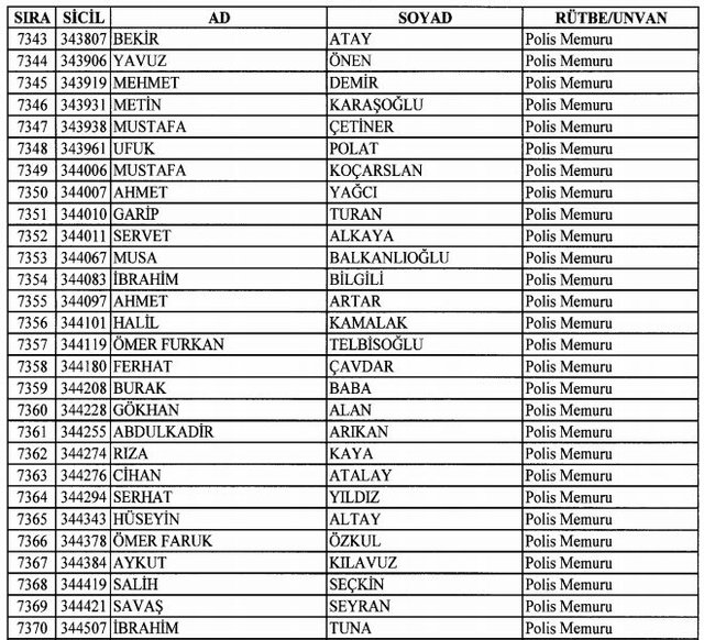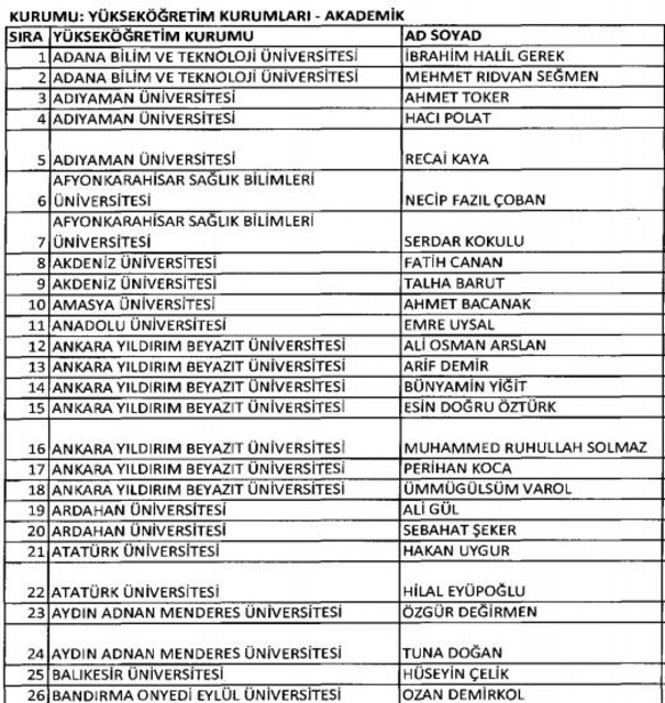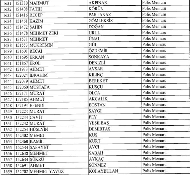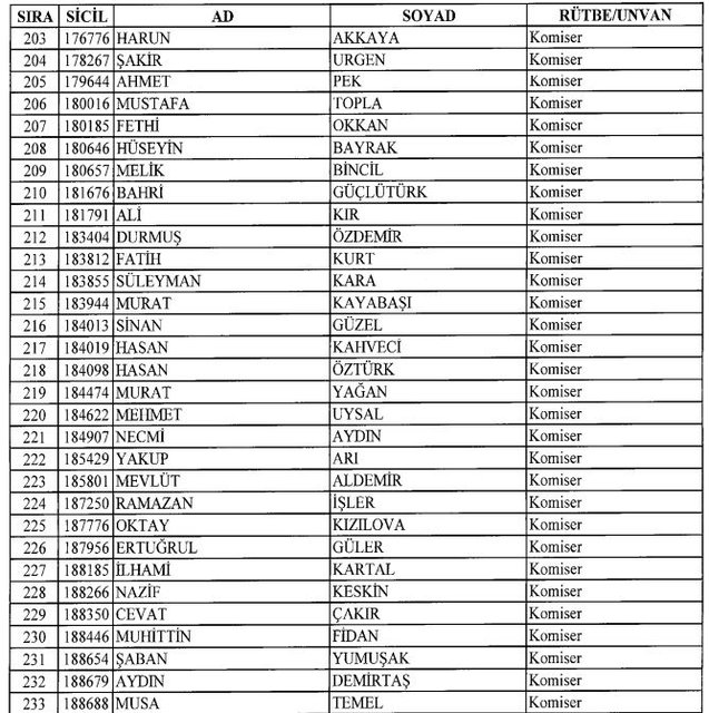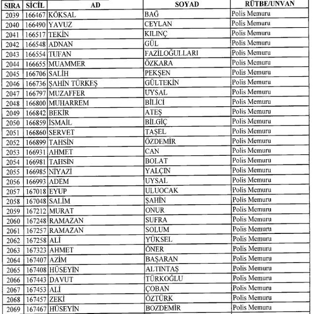 İhraç listesi yayımlandı. Olağanüstü Hal (OHAL) kapsamında yayımlanan 701 sayılı Kanun Hükmünde Kararname (KHK) ile çeşitli kurumlarda görev yapan 18 bin 632 personel kamudan ihraç edildi. Aynı KHK ile 148 personel, kamudaki görevlerine iade edildi. Kurumlarından daha önce ayrılan, TSK'dan 324, Emniyet Genel Müdürlüğünden 1167 ve jandarmadan 35 personelin rütbeleri 701 sayılı KHK ile alındı. İşte son KHK ihraç listesi...