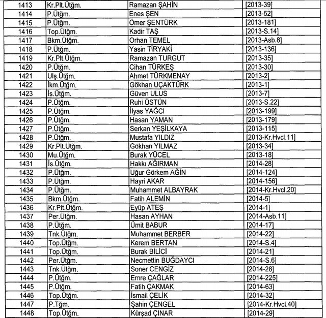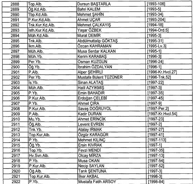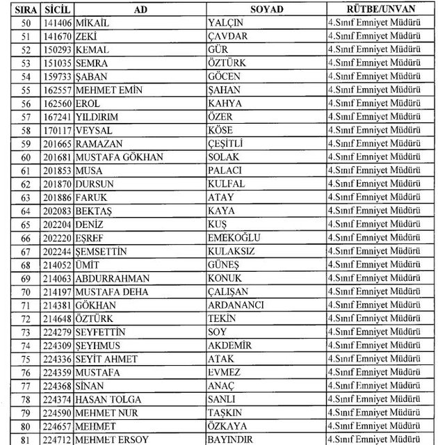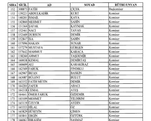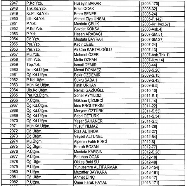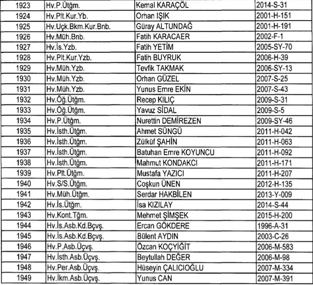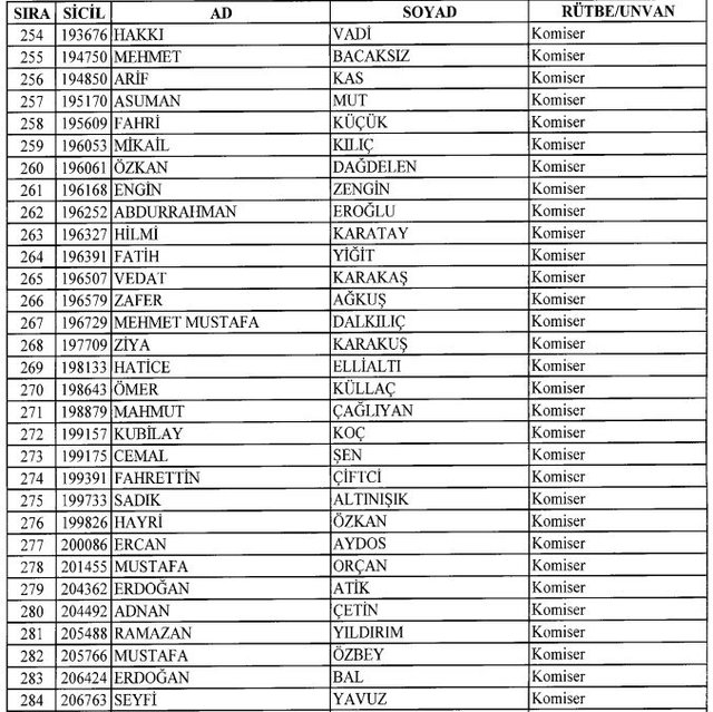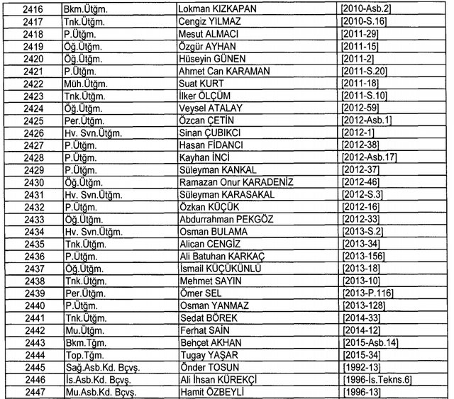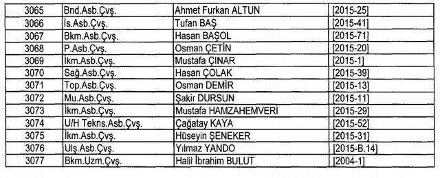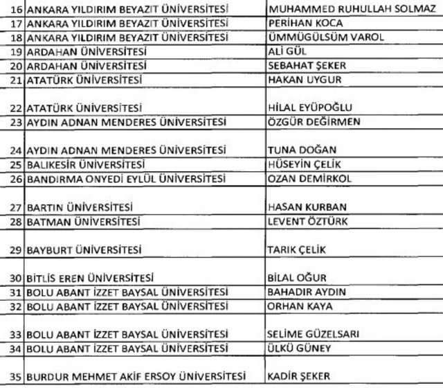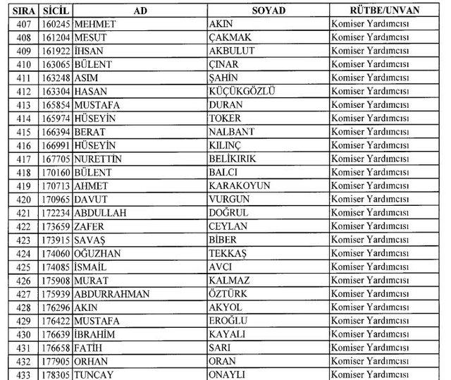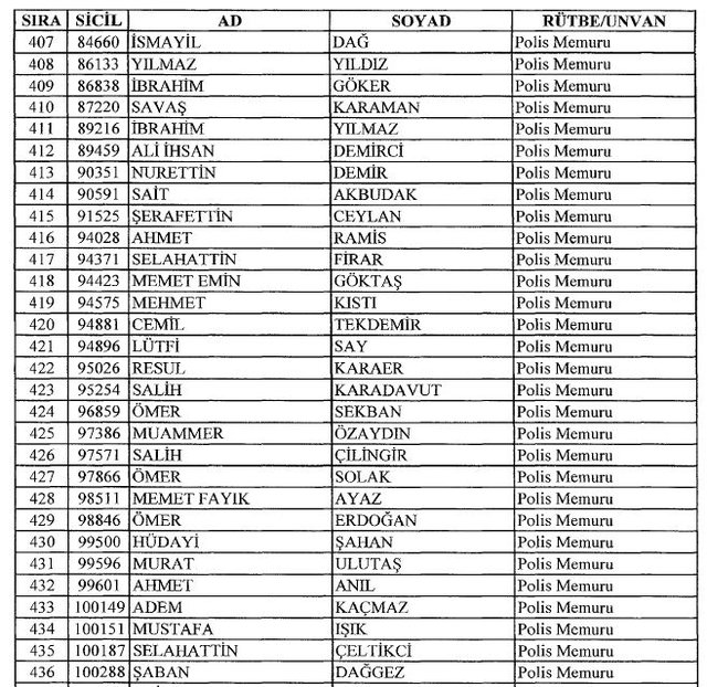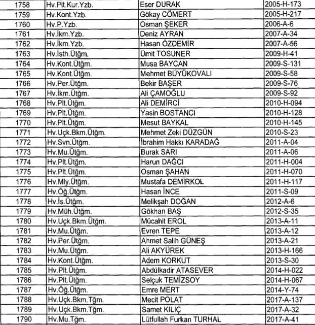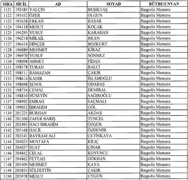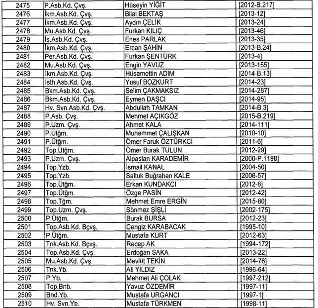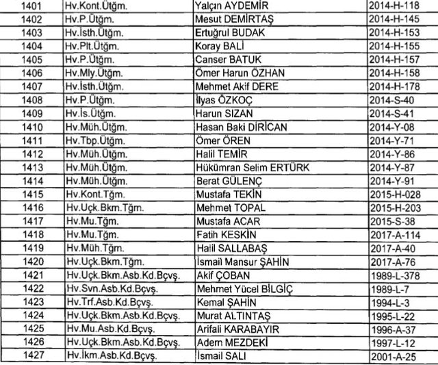 İhraç listesi yayımlandı. Olağanüstü Hal (OHAL) kapsamında yayımlanan 701 sayılı Kanun Hükmünde Kararname (KHK) ile çeşitli kurumlarda görev yapan 18 bin 632 personel kamudan ihraç edildi. Aynı KHK ile 148 personel, kamudaki görevlerine iade edildi. Kurumlarından daha önce ayrılan, TSK'dan 324, Emniyet Genel Müdürlüğünden 1167 ve jandarmadan 35 personelin rütbeleri 701 sayılı KHK ile alındı. İşte son KHK ihraç listesi...