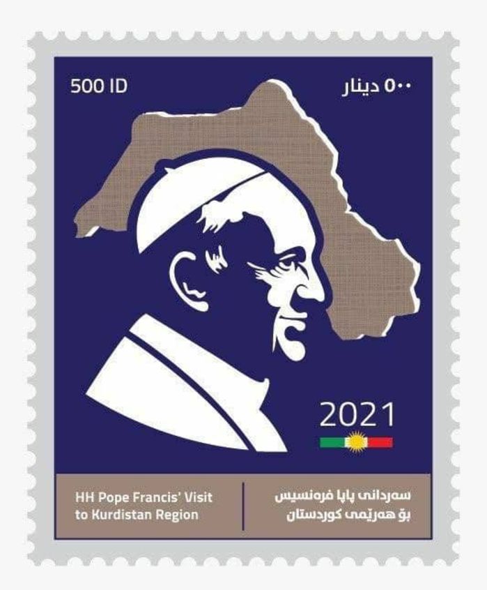 Katoliklerin Ruhani Lideri Papa Francis'in Irak’a gerçekleştirdiği tarihi ziyaretin anısına IKBY Ulaştırma ve İletişim Bakanlığı anı pulları bastırdı.