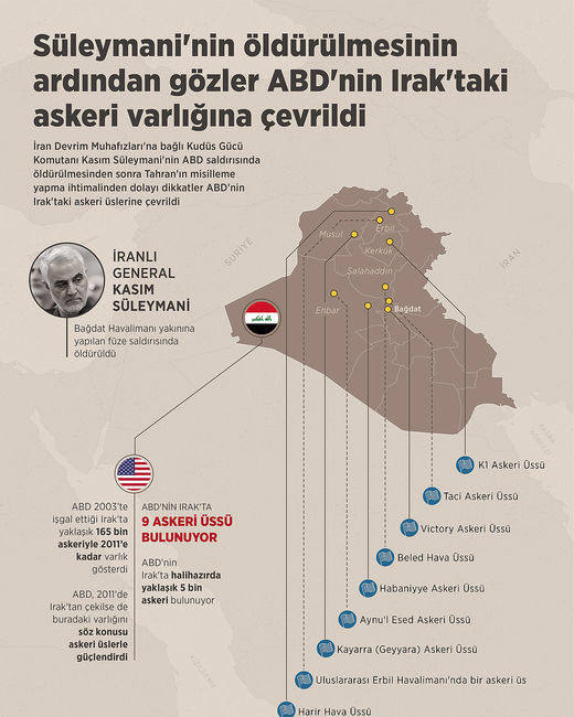 Öte yandan İran devlet televizyonu, ABD üslerinin Irak sınırı yakınlarındaki Kirmanşah kentinden fırlatılan katı yakıtlı "Fatih" füzeleriyle vurulduğunu duyurdu.