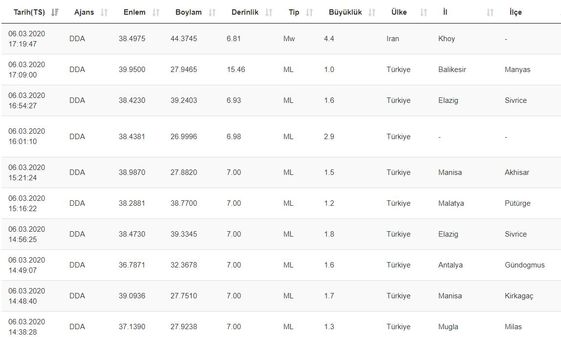 SON DEPREMLER - 6 MART