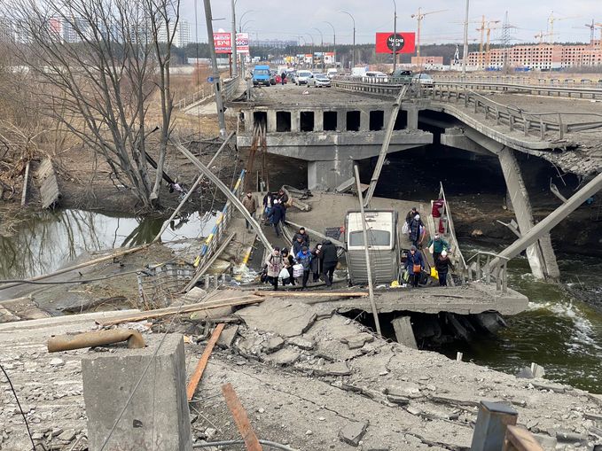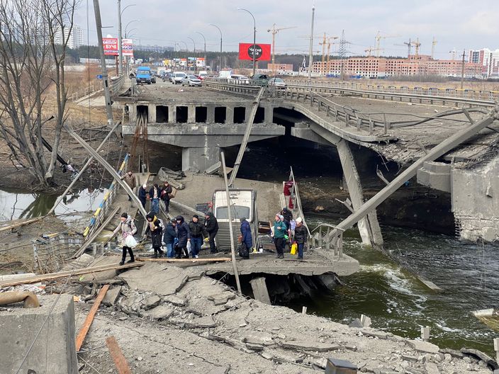Rusya'nın Ukrayna'ya saldırısı tahliyeler esnasında da devam ediyor. Irpin şehrinde köprü etrafında tahliye için toplanan sivillerin birkaç metre uzağında patlama meydan geldi.
