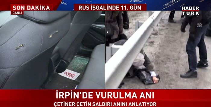 Ukrayna'nın başkenti Kiev yakınındaki İrpin'de sivillerin tahliyesi gerçekleşirken patlama meydana geldi. Habertürk yazarı Çetiner Çetin ve kameraman Hakan Öztürk çatışmaların ortasında kaldı.