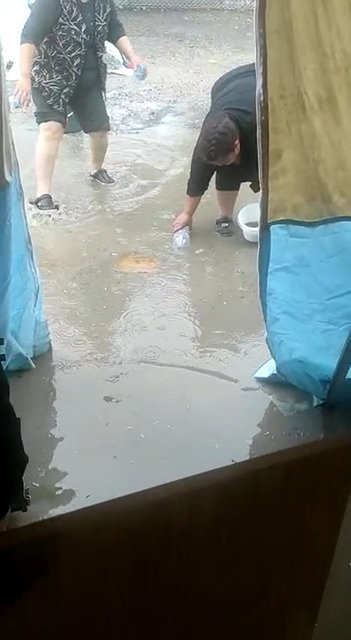 Çadır kenarlarından dolan su ile bazı vatandaşların eşyaları da zarar gördü.
