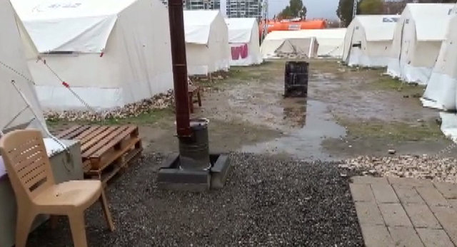 Deprem bölgesinde etkili olan sağanak yağış çadır kentleri vurdu. Çadır kenarlarından dolan su ile bazı depremzedelerin eşyaları zarar gördü. Vatandaşlar çamur ve su birikintisinden korumak için yoğun çaba harcadı