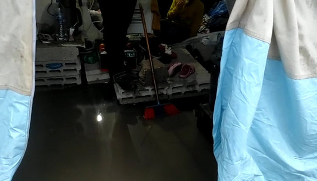 Burada yaşayanlar çadırlarını çevredeki çamur ve su birikintisinden korumak için yoğun çaba harcadı.