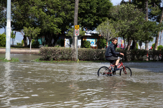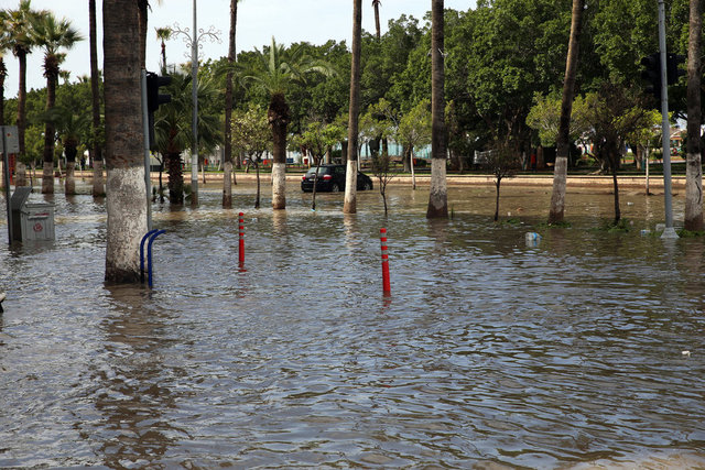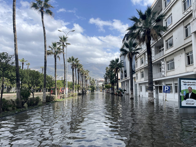 Depremin vurduğu Hatay İskenderun'da deniz seviyesi tekrar yükseldi. Lodos ve sağanak nedeniyle yaşanan tabloda ise sahil bandındaki bazı caddeler su altında kaldı