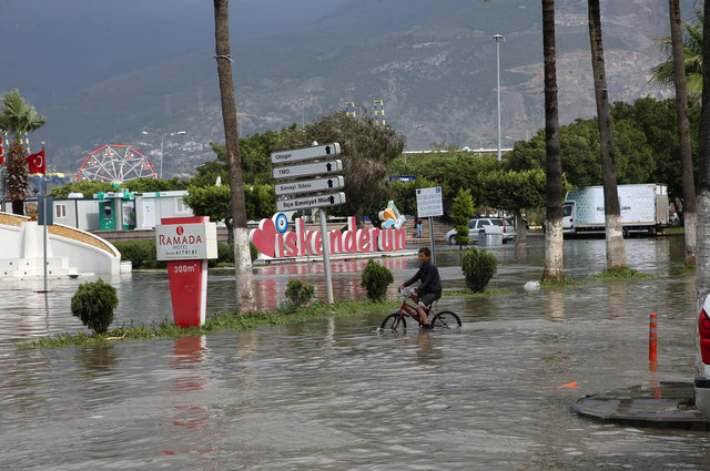 İskenderun'da lodos ve sağanak hayatı olumsuz etkiledi