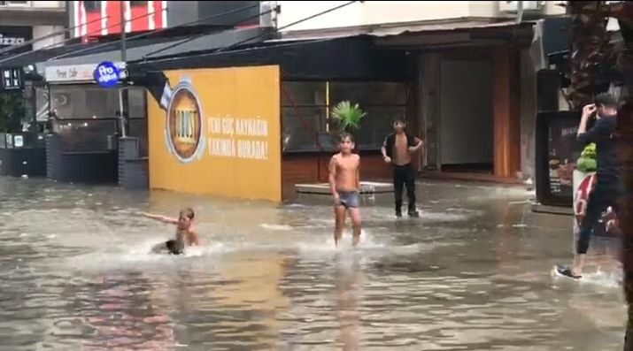 Öte yandan, yağmur sonrası Kıbrıs Şehitleri Caddesi'nde bir grup Suriyeli çocuğun yağmurda oynaması dikkat çekti.