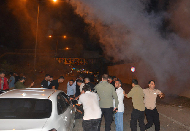 Uyarılara aldırış etmeyen grup ile güvenlik güçleri arasında arbede yaşandı. Olay sırasında başına taş isabet eden 2 polis memuru yaralandı. Atılan taşlar yüzünden yoldan geçen sivil araçların da zarar görmesi üzerine polis ekipleri gruba müdahalede bulundu. Müdahalenin ardından grup sloganlar atarak dağıldı.