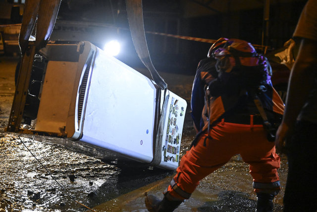 İtfaiye ekipleri ve bazı Gümrük Müdürlüğü çalışanlarının suda telefon ışığıyla arama yaparak mahsur kalanları kurtarmaya çalıştığı görüldü.
