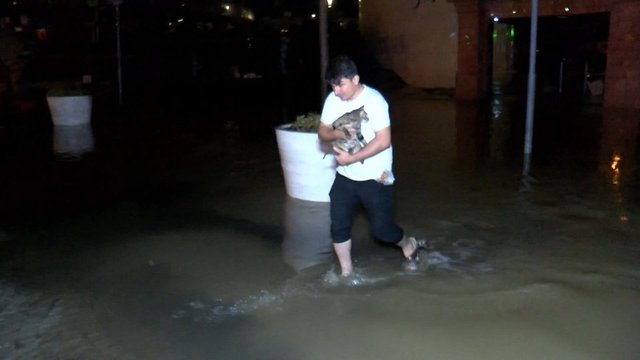 Sağanak başladığında arkadaşlarıyla oturduğunu belirten Ramazan Ataş, "Allahtan çok şükür bir şey olmadan kurtulduk. Bir anda oldu her şey. Bir anda yağmur başlangıcı, daha sonra sel başlangıcı. Ne olduğunu biz de anlamadık. Ortalama 2-2,5 saattir bekliyoruz. Çatıya çıkmak zorunda kaldık çünkü yere kadar sular gelmişti. Mekana kadar girmişti sular" diye konuştu.