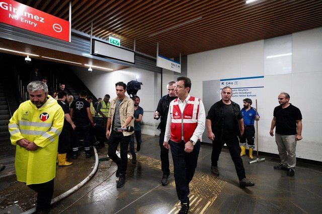 Ayamama Deresi çok yüksek oranda kabarmış olsa da suyun doğal akışında aktığını söyleyen İmamoğlu, Kayaşehir Metro İstasyonu'nun göllenme ve sel suları yaşanması nedeniyle kapatıldığını belirtti.