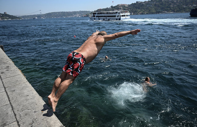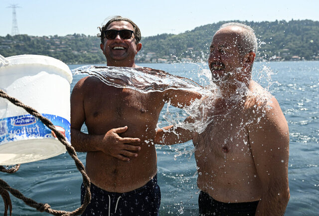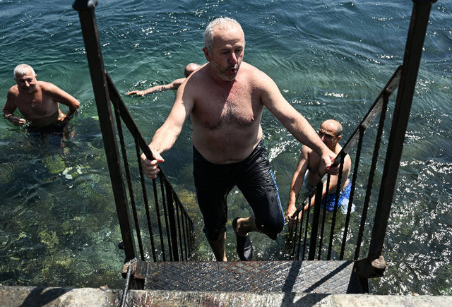 Sabah erken saatlerde kalabalık başlamadan İstanbul Boğazı'nda yüzmeye geldiklerini anlatan Elik, "Klima var ama klimadan nefret ediyoruz. O yüzden burayı tercih ediyoruz." diye konuştu.