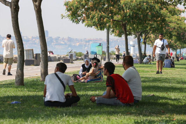 Tatil gününü fırsat bilen bazı aileler, parklarda gölgelik alanları doldururken bazı vatandaşlar da denize girerek serinlemeye çalıştı.