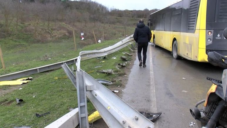 Arnavutköy'de İETT otobüsünün bariyere çarpması nedeniyle 2 yolcu yaralandı.