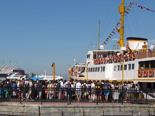 Sabahın erken saatlerinden itibaren Kadıköy ve Kabataş İskelelerine gelenler, vapura binmek için kuyruk oluşturdu.