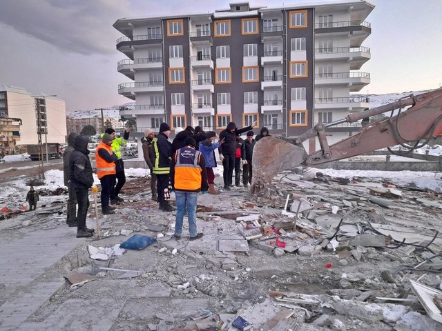 "Yollar kapalıydı, ana bulvar yıkıntılarla kapalıydı fakat daha yamaçlara ilerlediğiniz zaman yine merkez ilçesinde hasarın çok sınırlı olduğunu gözlemledik. Orada kendimize kalacak bir yer bulmak durumundaydık. Arama kurtarma ekibi gibi tüm ekipler kalacak yer sıkıntısı taşıyorlardı. Biz bu kapsamda hemen biraz daha yamaçta bulunan turizm uygulama oteli binasını hızlıca inceledik, hemen onun arkasında bulunan pansiyon binasını inceledik güvenli olduğuna kanaat getirdik ve orada yatmaya başladık. Biz yatmaya başlayınca, ' Teknik üniversitesi hocaları da burada kalıyorsa biz rahat rahat kalabiliriz' diyerek bir anlamda ekiplerin psikolojilerinin rahatlamalarına hizmet ettik. Çelikhan, Tut ilçesi ve Pınarbaşı beldelerini de görme şansımız oldu. Buralar daha dağlık bölgeler. İyi zemin koşullarına sahip bölgeler. Elbet hasarlar vardı ama daha sınırlı olduğunu, çok olumsuz koşullara sahip binaların oralarda da kısmen veya toptan göçtüğünü gözlemleme imkanımız oldu."