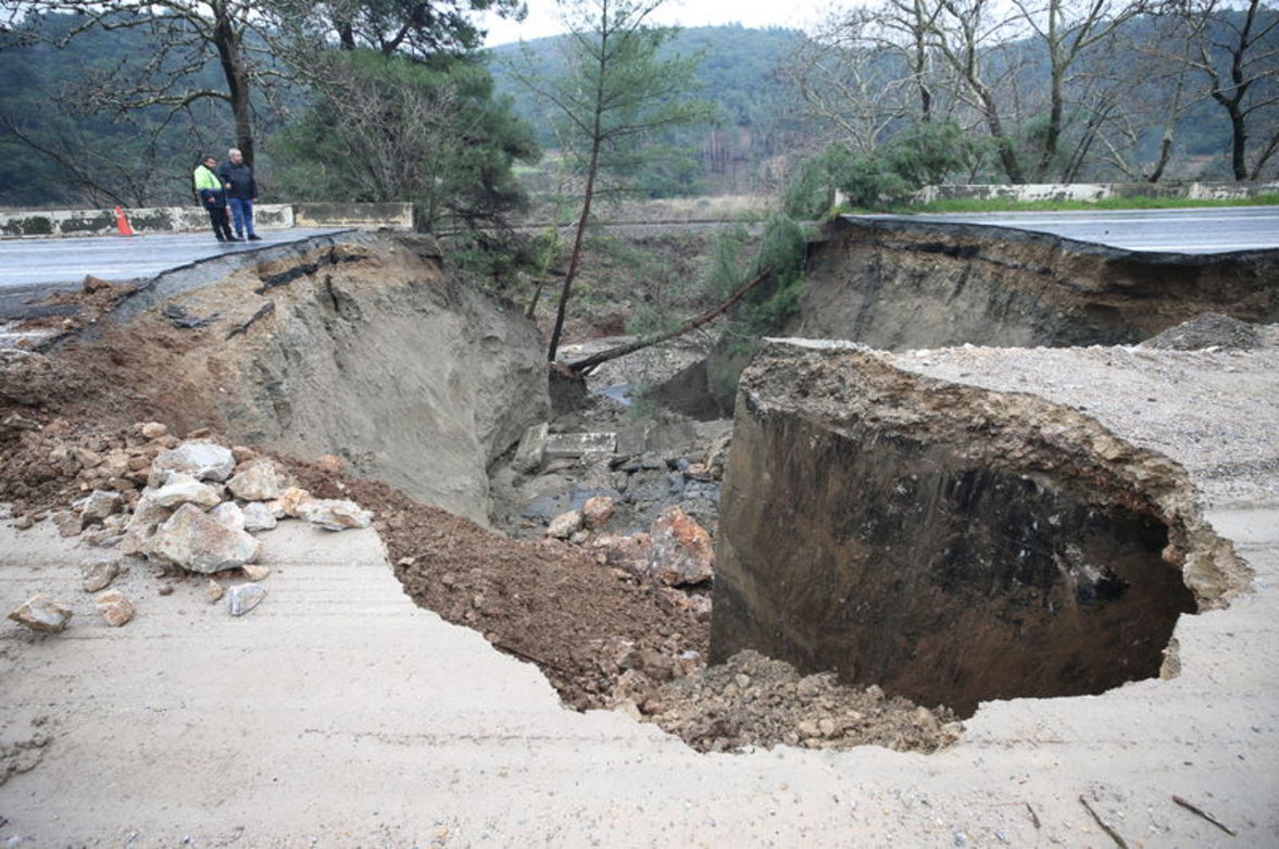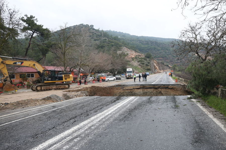 İzmir'de etkili olan kuvvetli sağanak nedeniyle Selçuk-Aydın kara yolunun Havutçu mevkisinde çökme meydana geldi. Çökme nedeniyle yol çift taraflı ulaşıma kapatılırken, jandarma ekipleri bölgede önlem aldı. Ekipler, çöken yolu onarmak için çalışmalara başladı