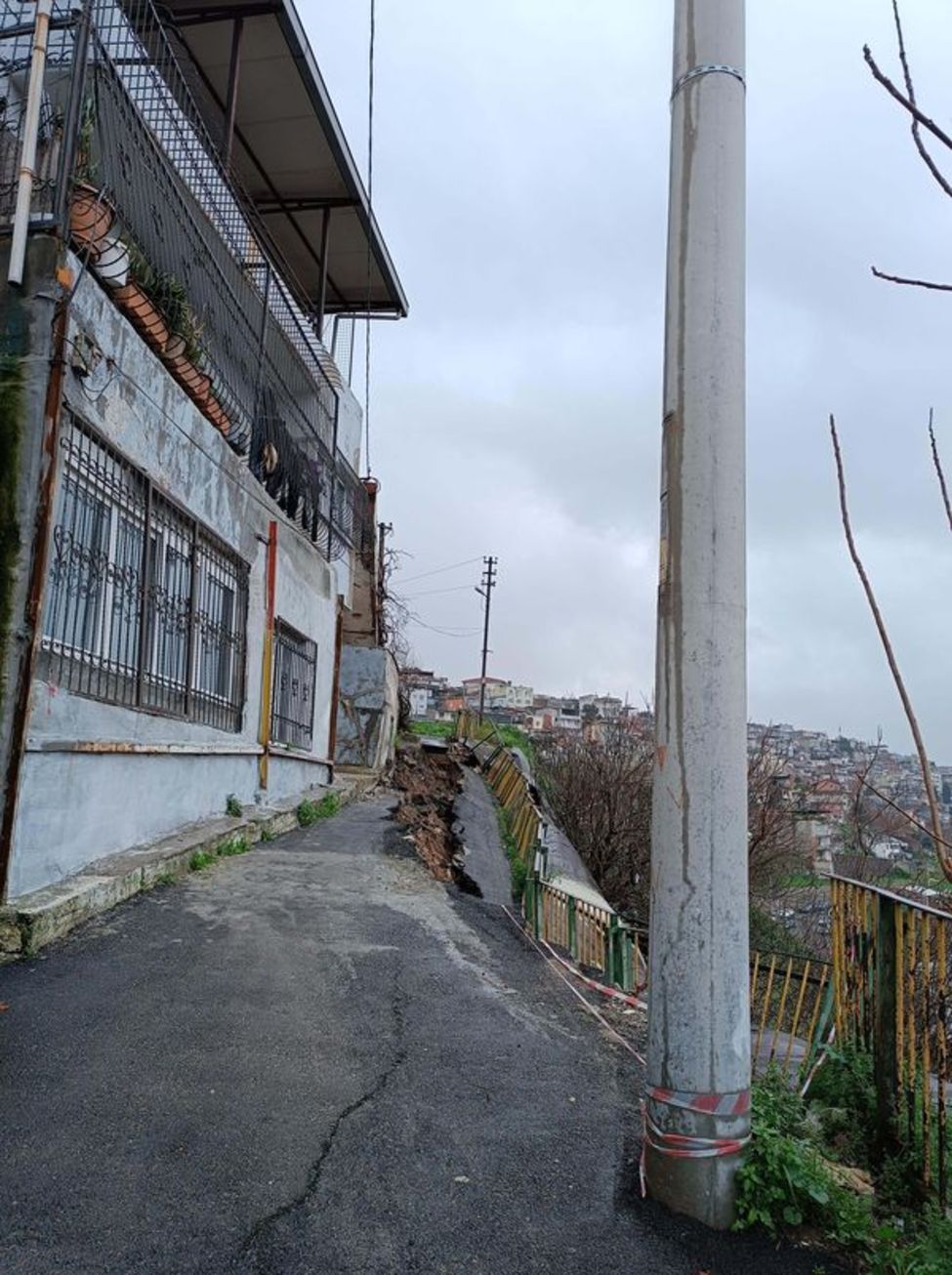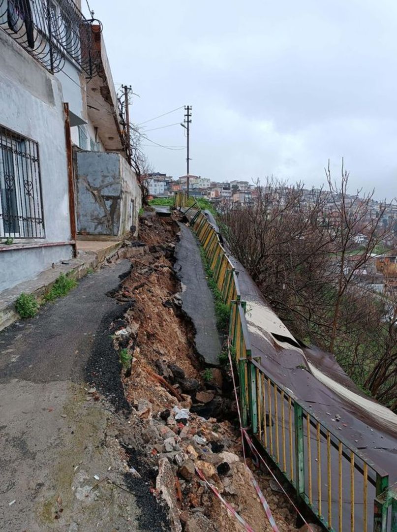Çöken yol üzerindeki iki ev, çökme tehlikesiyle karşı karşıya kaldı. Yol trafiğe kapatıldı.