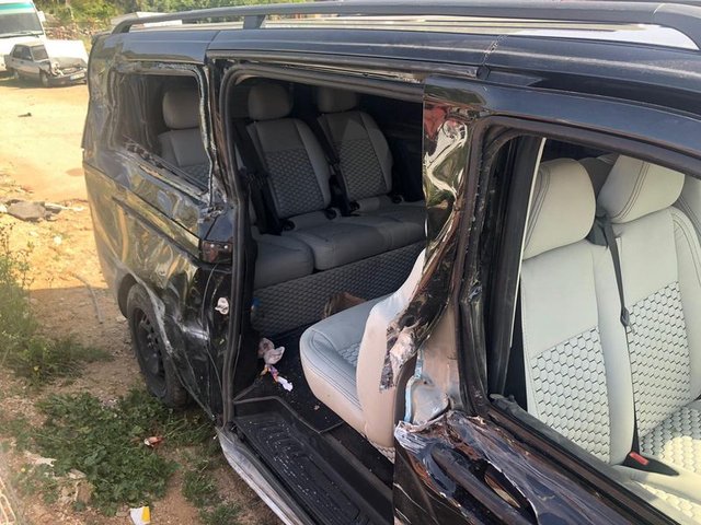 Kazaya karışan minibüsteki hasar da günün aydınlanmasıyla birlikte ortaya çıktı. Kameralara yansıyan görüntüde aracın kapısının yerinde olmadığı ve VIP minibüsün sağ tarafının ağır hasarlı olduğu dikkat çekti. Kazada öte yandan hava yastıklarının da alınan darbeden dolayı açıldığı görüldü.
