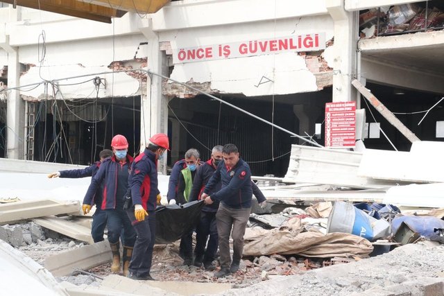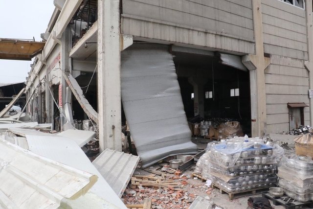 Dulkadiroğlu ilçesi Karaziyaret Mahallesi'nde depremlerde ağır hasar alan bir metal fabrikasında, iddiaya göre, iş yeri sahibi, bazı işçileri paket ürünleri içeriden çıkartmak için görevlendirdi.