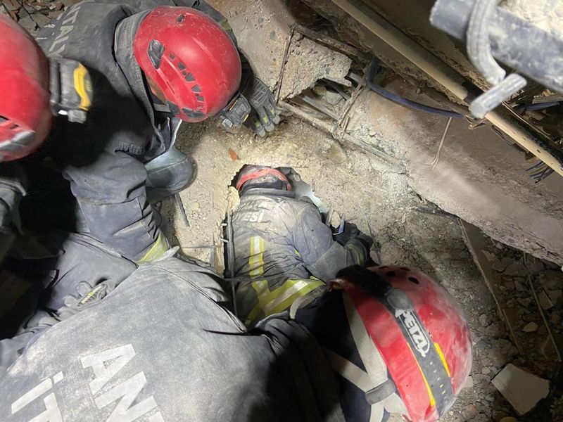 Enkazın altından çıkarılan genç, sağlık ekiplerine teslim edildi.