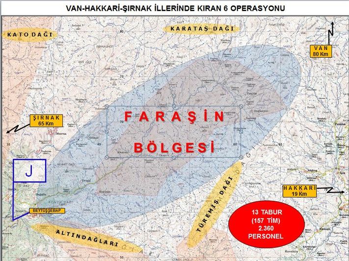 Van, Hakkari ve Şırnak illeri kırsalındaki Faraşin Bölgesinde Bölücü Terör Örgütünün kış üslenmesine girmesini engellemek ve bölgede barındığı değerlendirilen teröristleri etkisiz hale getirmek maksadıyla Şırnak Jandarma Bölge Komutanlığınca KIRAN-6 Operasyonu başlatıldı.