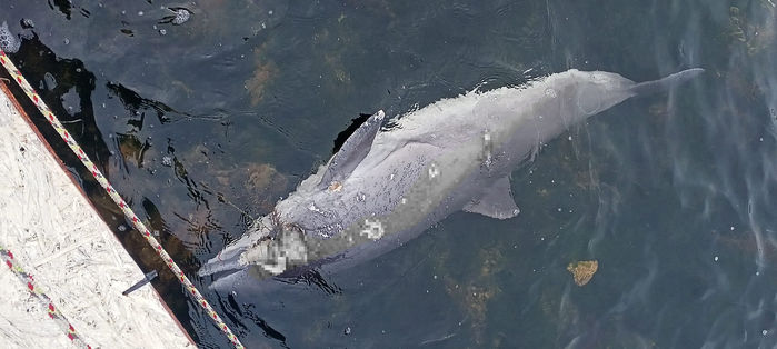 DHA'nın haberine göre, güvenlik görevlilerinin haber vermesi üzerine gelen Darıca Belediyesi Zabıta Müdürlüğü´ne bağlı Hayvan Sağlığı ve Refahı Ekibi, yaptıkları incelemede yunusun gövdesinde kurşun izlerini fark etti.