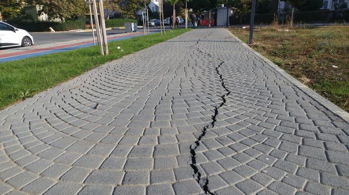 İstanbul Silivri'deki parkta bulunan çatlaklar 5.8 büyüklüğündeki deprem sırasında büyüdü. Depremin ardından çatlakların daha da büyüyerek metrelerce ilerlediğini söyleyen ilçede sakinleri tedirgin. Belediye ekipleri çatlaklar ile ilgili çalışma başlattı.