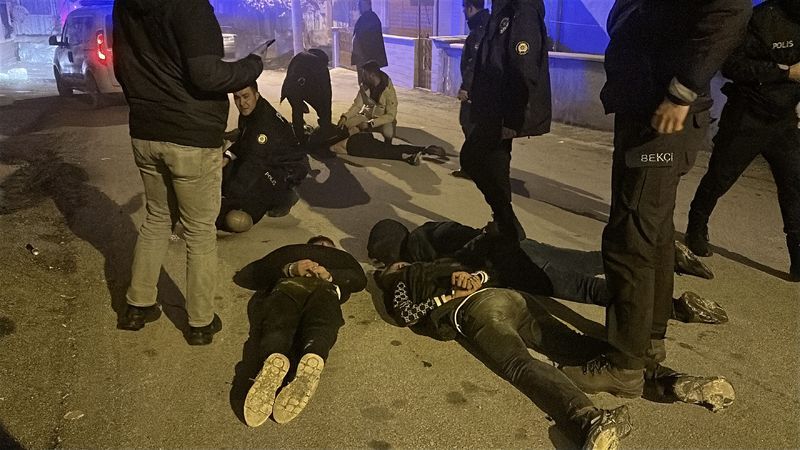 Ekipler araya girerken, polise mukavemette bulunan E.G. (18), S.A. (19), H.İ.A. (16), A.M.T. (21), A.C.T. (21), M.Ö. (19) ve E.G. (20) gözaltına alındı. Şüpheliler sağlık kontrollerinin ardından işlemleri için Şehit Mehmet Kartal Polis Merkezi Amirliği'ne götürüldü.