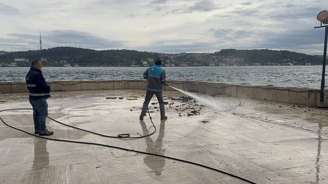 Beşiktaş Belediyesi ekipleri caminin avlusunda temizlik çalışması yaptı.