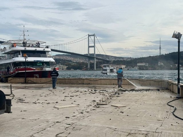 Kentte sabah saatlerinden itibaren etkisini artıran lodos dolayısıyla Ortaköy'deki Büyük Mecidiye Camisi'nin deniz kısmında bulunan beton bloklar yerinden söküldü.