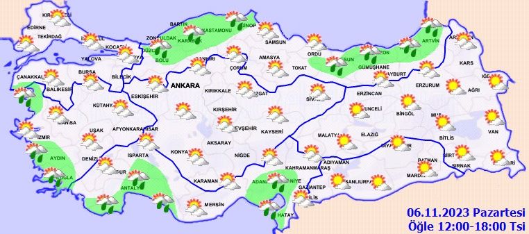 Meteoroloji Genel Müdürlüğü tarafından yapılan son değerlendirmelere göre: Ülkemiz genelinin parçalı ve yer yer çok bulutlu, Güney Ege kıyıları, Batı ve Doğu Karadeniz, Antalya, Isparta, Adana, Osmaniye, Ordu ve Ardahan çevreleri, Çanakkale’nin güneyi, Balıkesir’in batı kıyıları ile Hatay’ın kıyı kesimlerinin yerel olmak üzere sağanak yağışlı geçeceği tahmin ediliyor. Yağışların, Rize ve Artvin çevrelerinde yer yer kuvvetli olması bekleniyor. Sabah ve gece saatlerinde iç ve doğu kesimlerde yer yer pus ve sis bekleniyor.